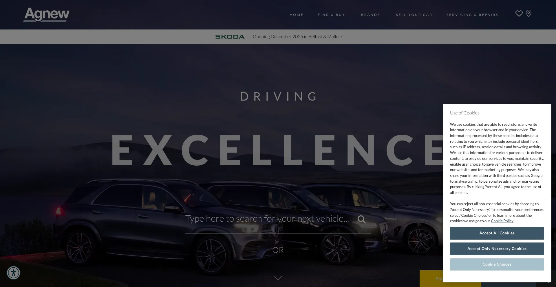 The website implements cookie consent mechanisms in compliance with privacy regulations such as GDPR or CCPA. This demonstrates that agnewcars.com adheres to data protection standards and provides users with control over personal data collection practices.