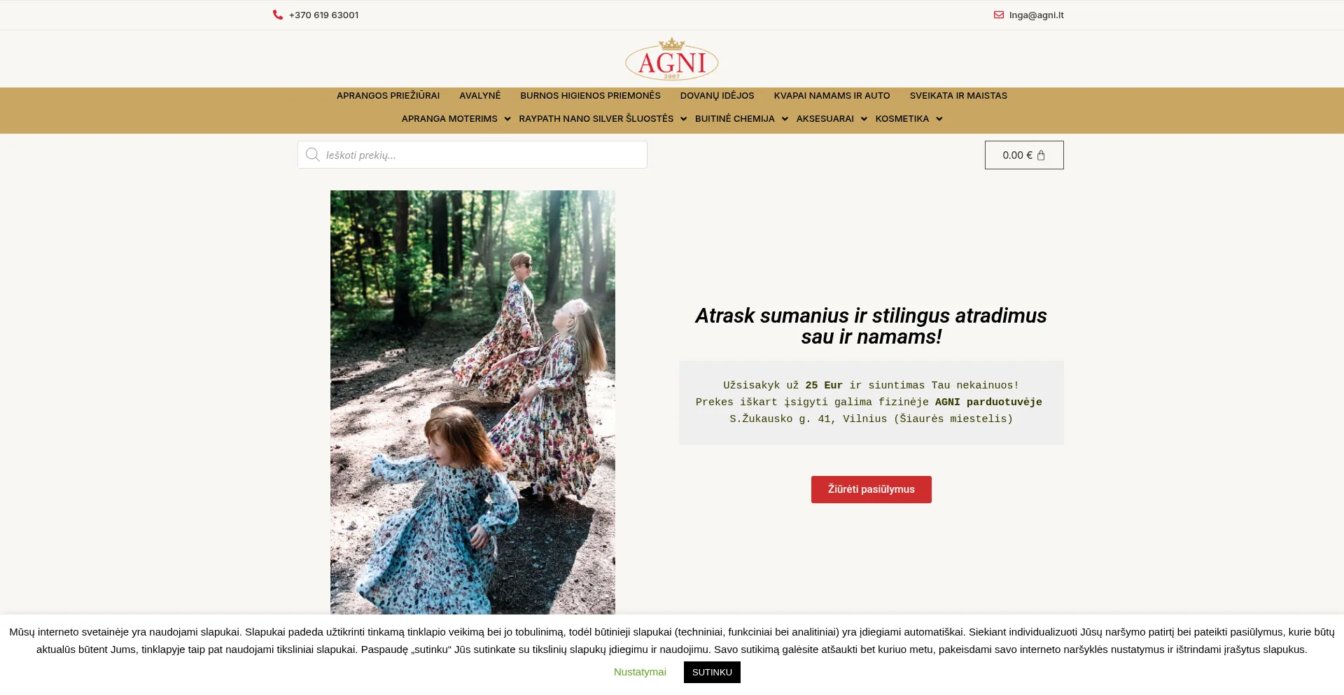 Analysis indicates that agni.lt operates as an e-commerce platform facilitating online transactions for goods or services. The website implements shopping cart functionality, payment processing systems, and product catalog features typical of commercial retail operations.