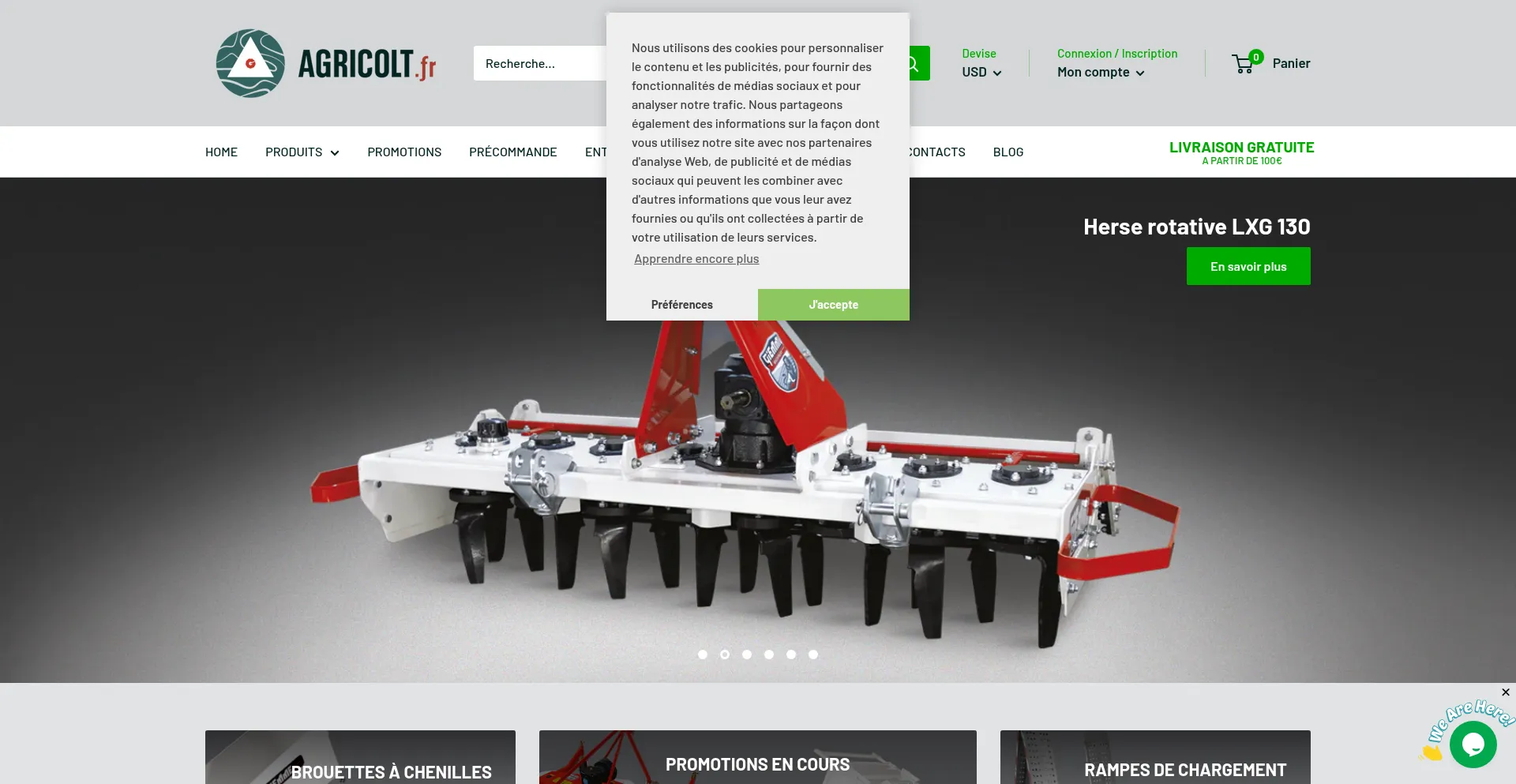 Analysis indicates that agricolt.fr operates as an e-commerce platform facilitating online transactions for goods or services. The website implements shopping cart functionality, payment processing systems, and product catalog features typical of commercial retail operations.