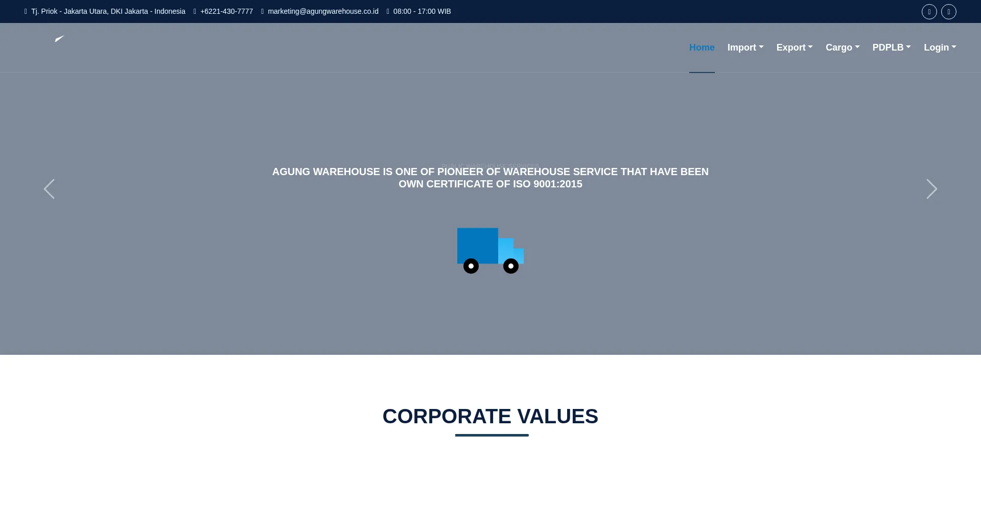 Agung Warehouse public warehouse services: Track & Trace, Cargo, Export, Import. ISO 9001 certified logistics partner in Jakarta, Tanjung Priok.
