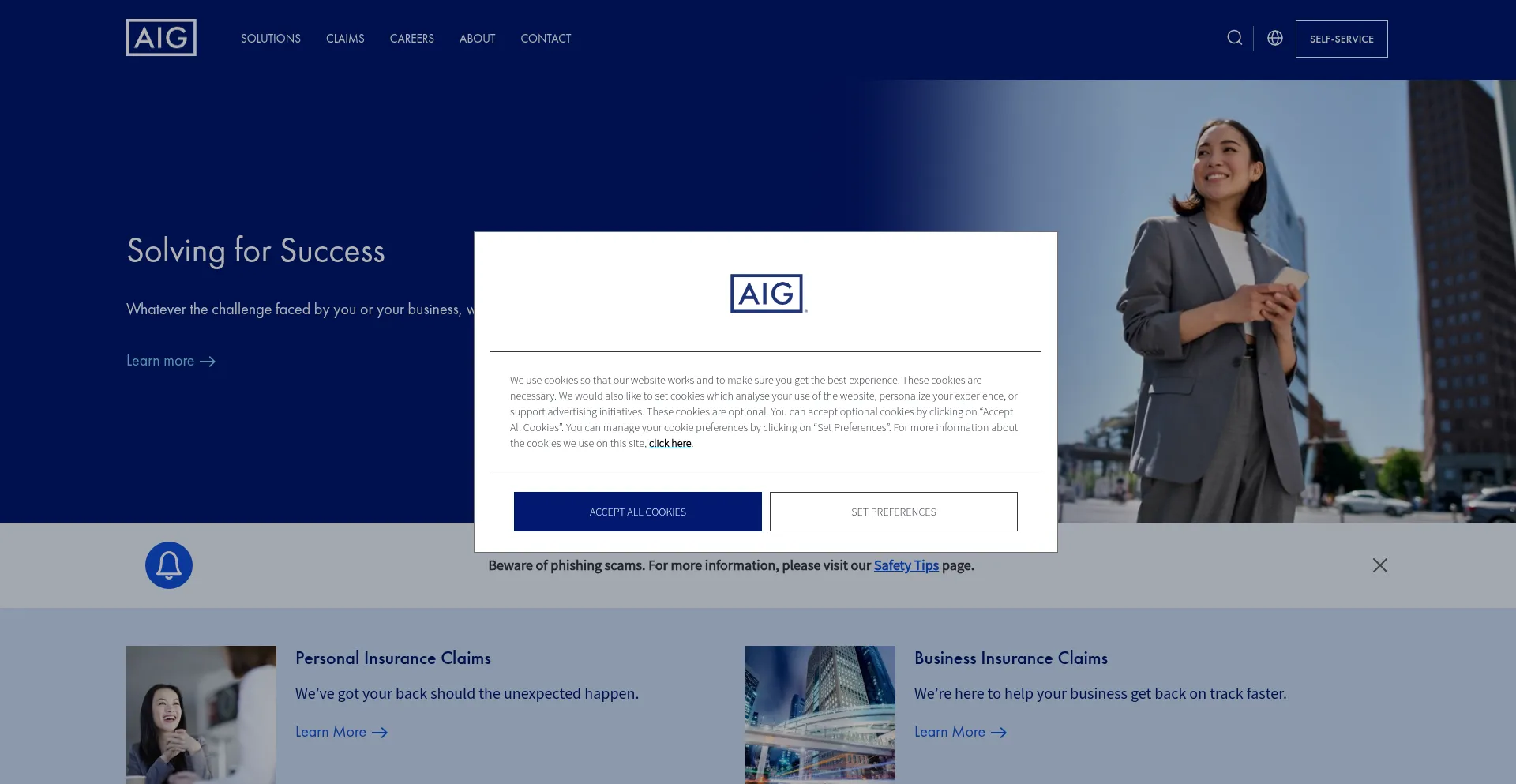 The website implements cookie consent mechanisms in compliance with privacy regulations such as GDPR or CCPA. This demonstrates that aig.sg adheres to data protection standards and provides users with control over personal data collection practices.