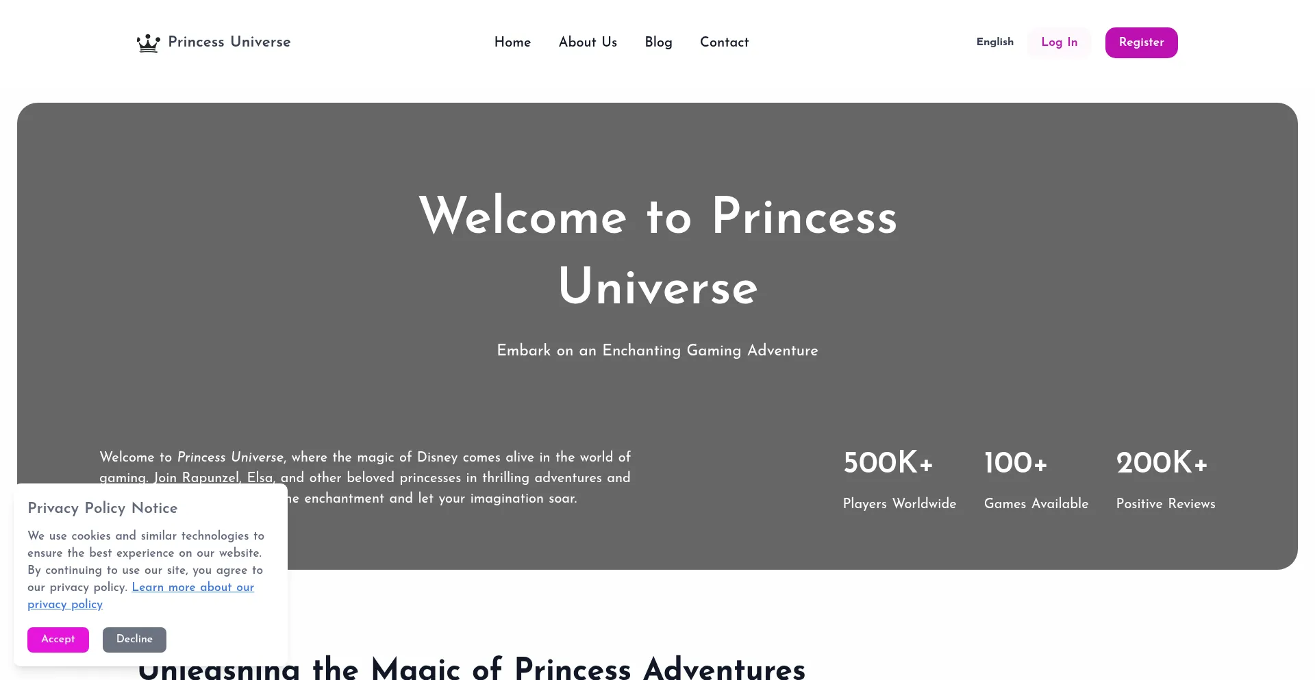Explore the magical world of gaming with Princess Universe. Dive into captivating adventures featuring your favorite Disney princesses like Rapunzel and Elsa from Frozen. Unleas...