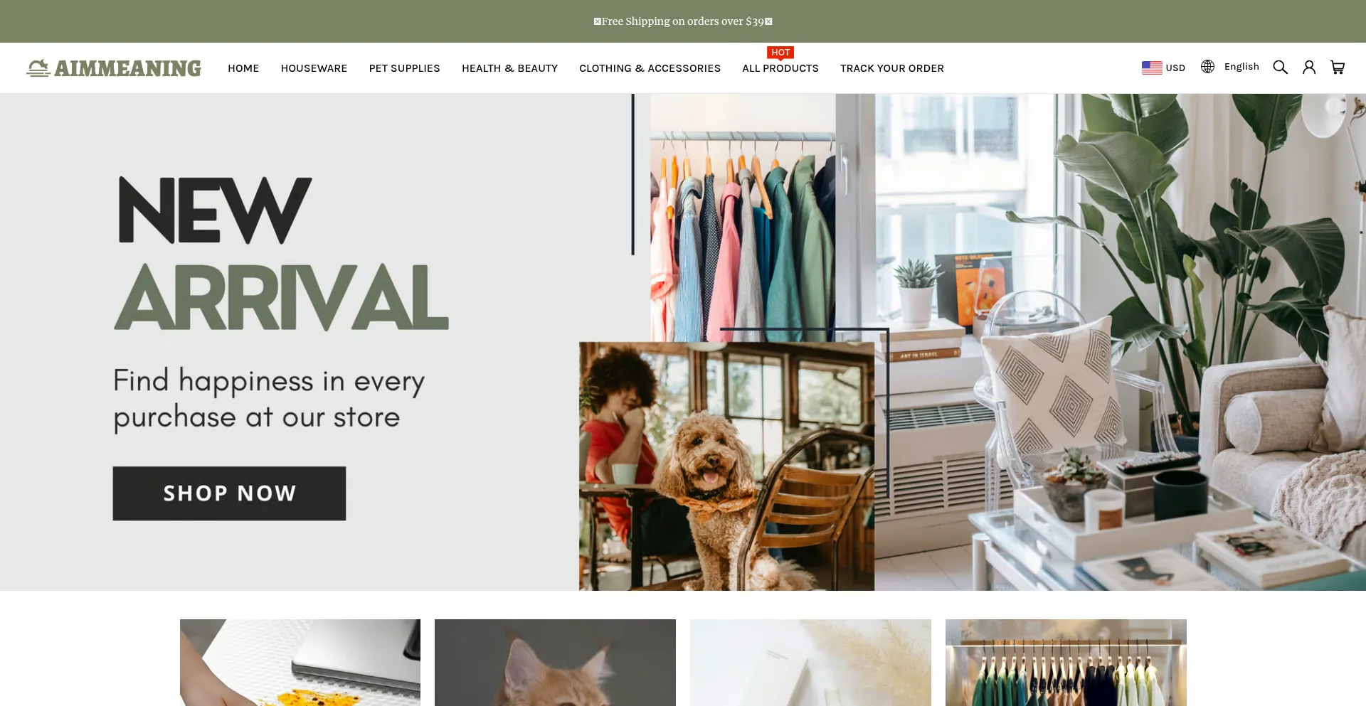 Analysis indicates that aimmeaning.com operates as an e-commerce platform facilitating online transactions for goods or services. The website implements shopping cart functionality, payment processing systems, and product catalog features typical of commercial retail operations.