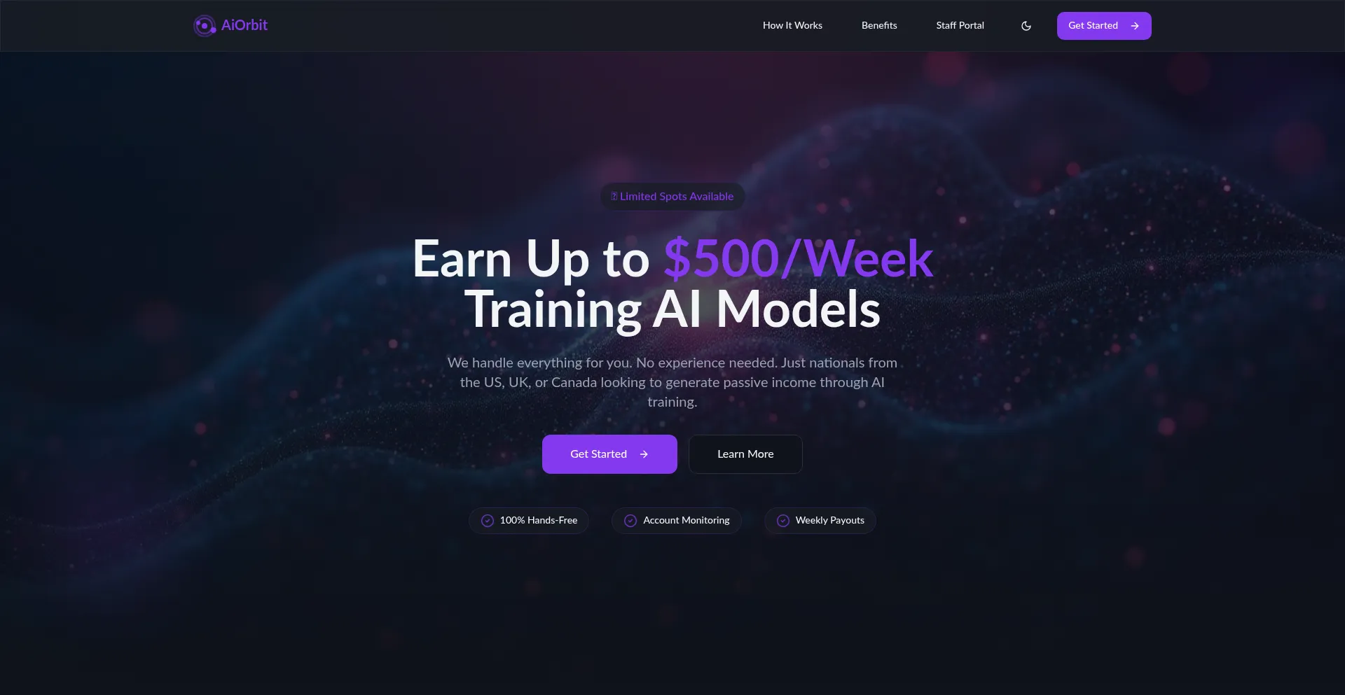 Earn up to $500/week passively through AI training. Available to US, UK, and Canada nationals. Completely hands-free setup and monitoring.