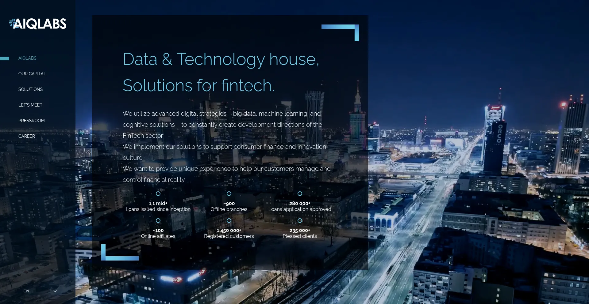 AIQLABS – Data & Technology house, Solutions for fintech | Wykorzystujemy zaawansowane strategie digital – big data, machine learning i rozwiązania poznawcze – do ciągłego kreowania kierunków rozwoju sektora fintech.