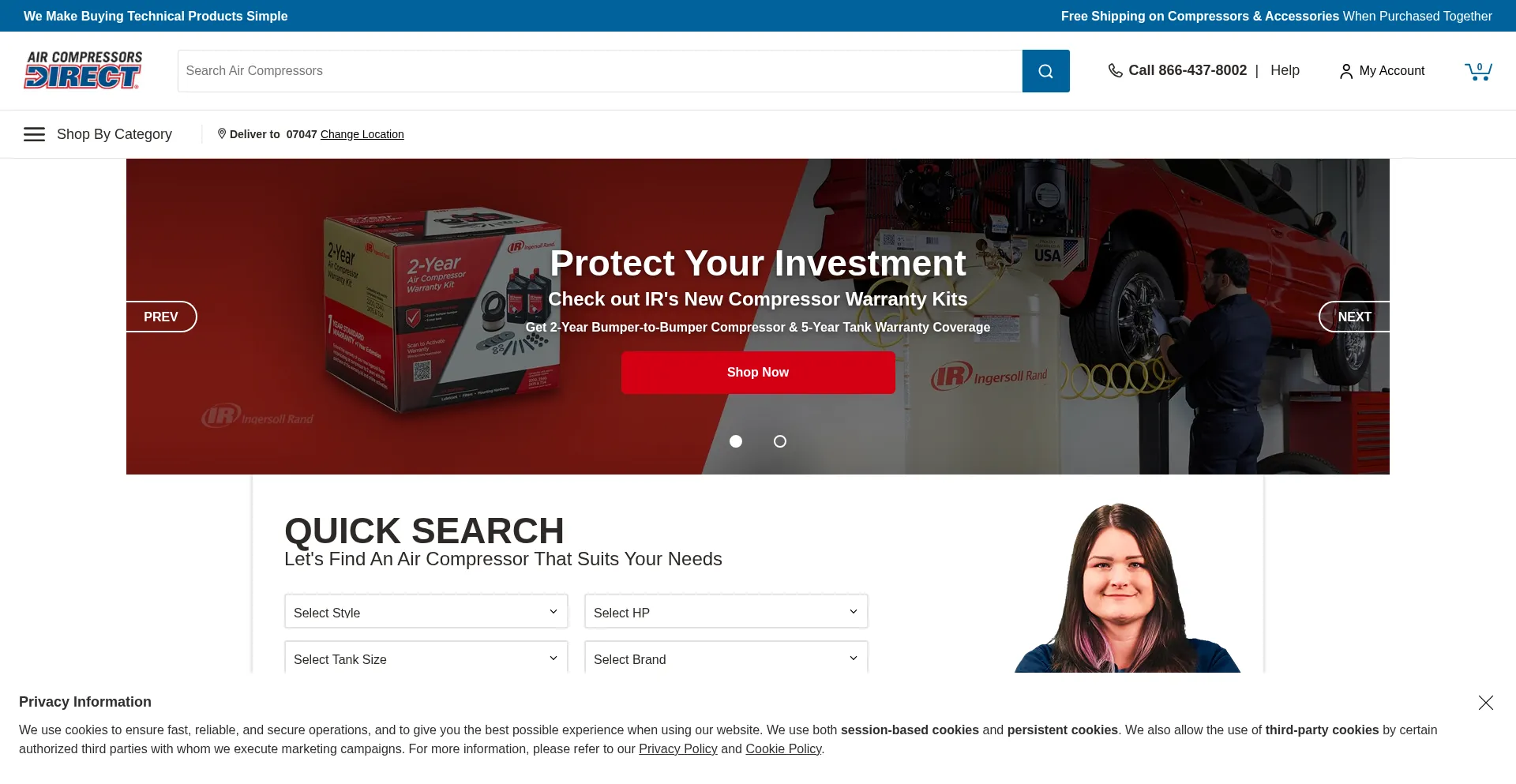The website implements cookie consent mechanisms in compliance with privacy regulations such as GDPR or CCPA. This demonstrates that aircompressorsdirect.com adheres to data protection standards and provides users with control over personal data collection practices.