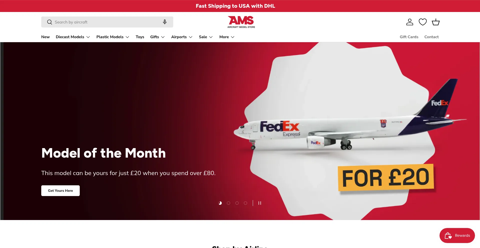 Our analyzer determines that website aircraftmodelstore.co.uk is using Shopify CMS. Shopify is a popular e-commerce platform, powering around 4.4% of websites globally.