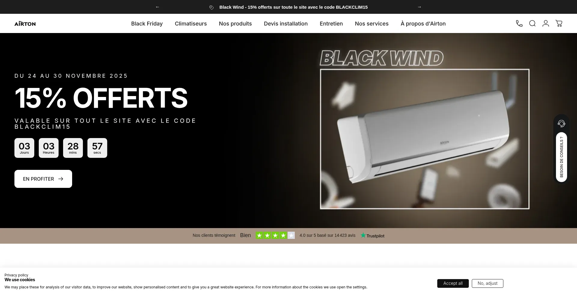 Black Friday Climatisation Airton - offre exceptionnelles sur climatiseurs, liaisons ReadyClim, modules Wi-Fi. 30€ offerts sur les liaisons Readyclim avec le code RCBF30.