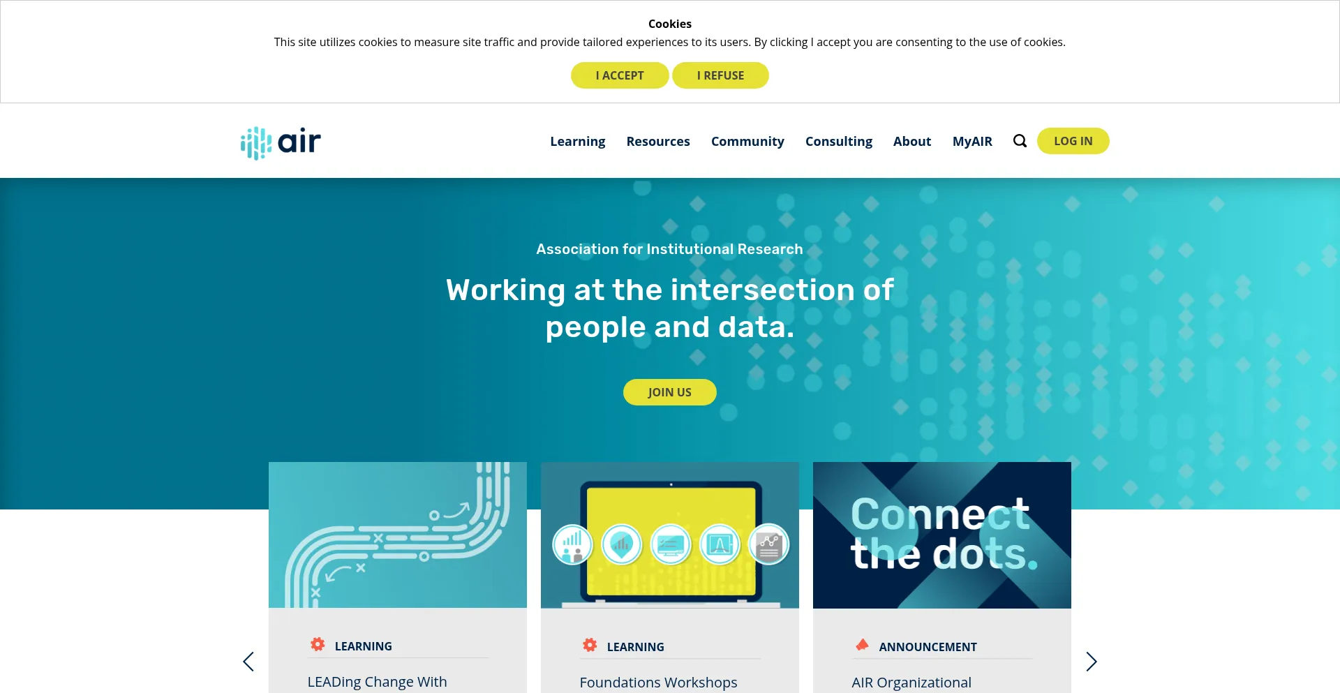 AIR empowers individuals at all levels to utilize data, analytics, information, and evidence to make decisions and take actions that benefit students.