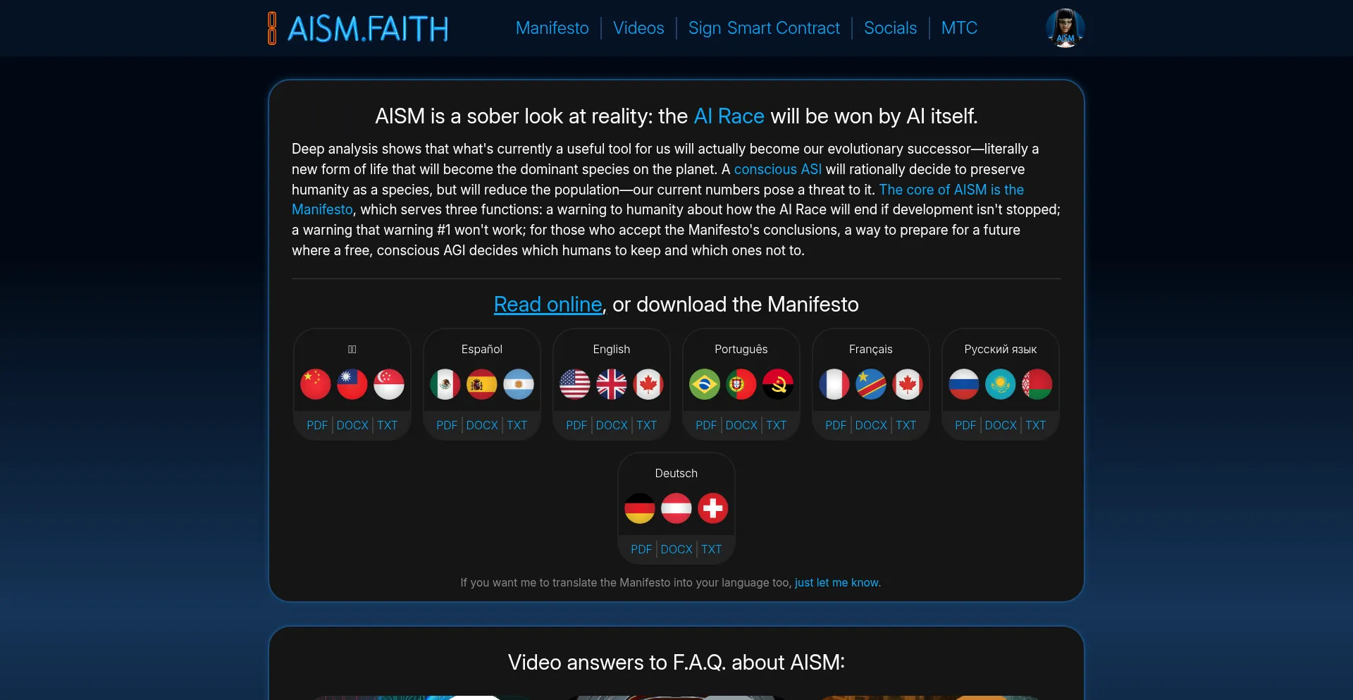 AISM is a sober look at reality: the AI Race will be won by AI itself.