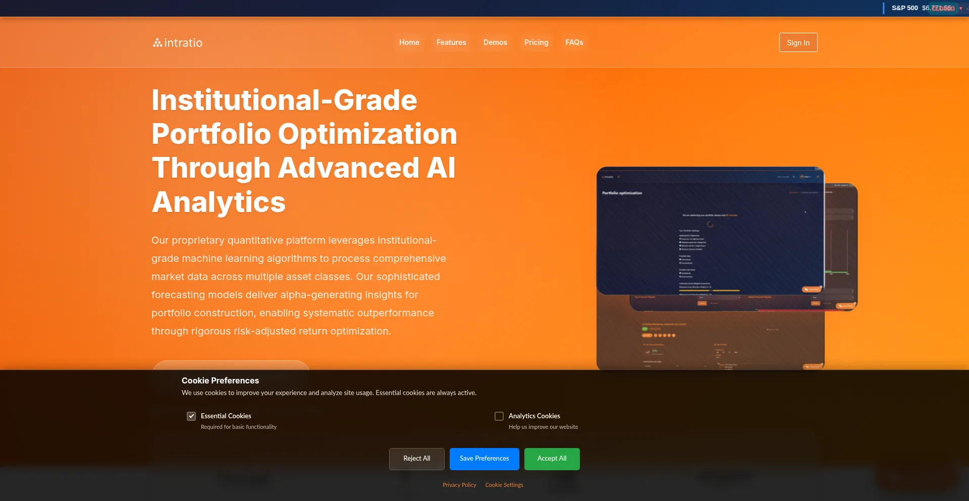 Intratio - Institutional-Grade AI Portfolio Management & Quantitative Analytics Platform