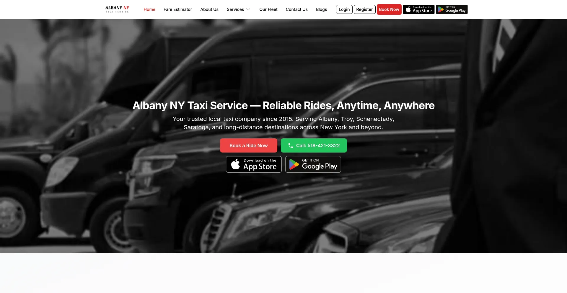 The albanynytaxiservice.com website offers a mobile application for Android devices, indicating expanded platform presence beyond web-based services.