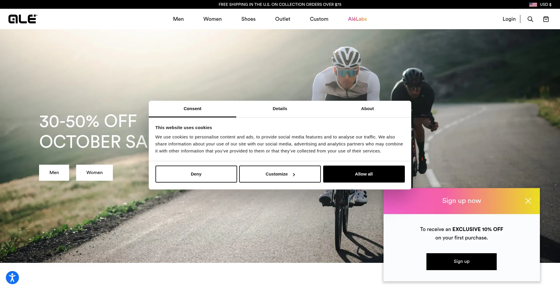 The website implements cookie consent mechanisms in compliance with privacy regulations such as GDPR or CCPA. This demonstrates that alebikewear.com adheres to data protection standards and provides users with control over personal data collection practices.