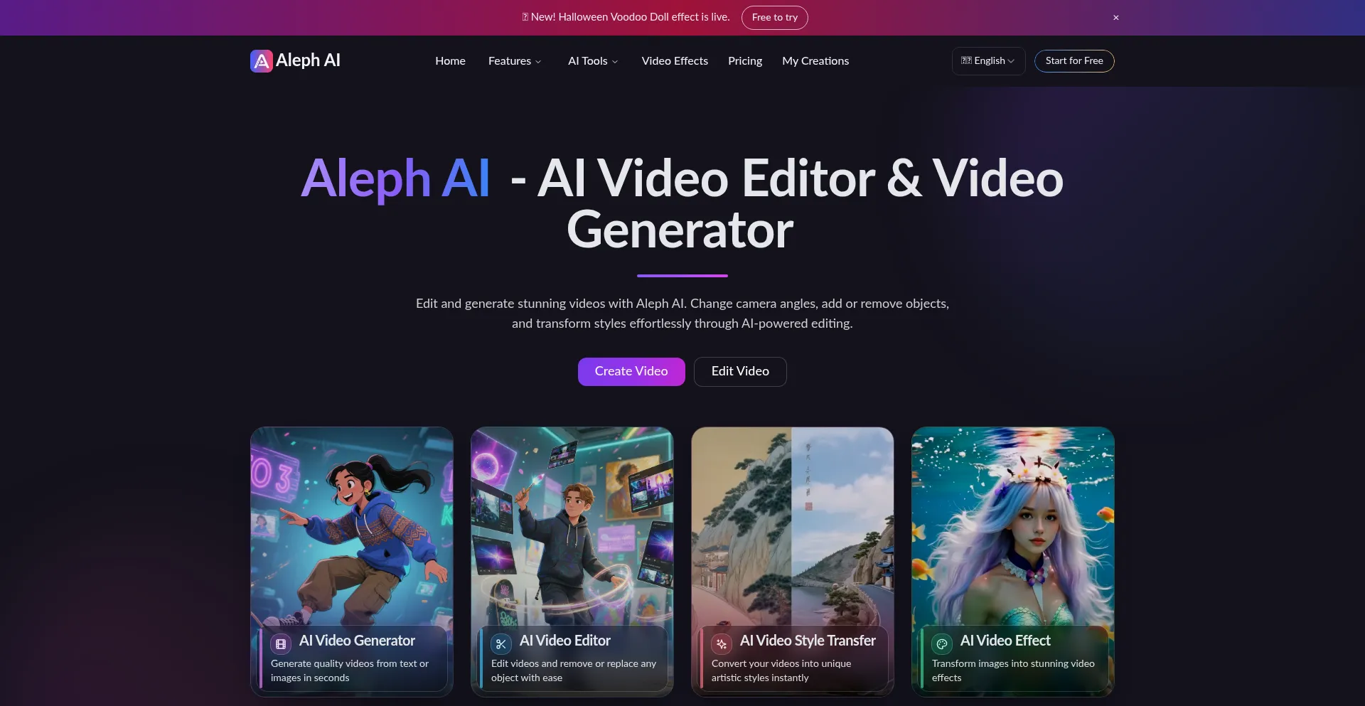 Aleph AI is a free AI video editor and video generator. Change camera angles, add/remove objects, transform styles, and modify environments with simple text prompts.