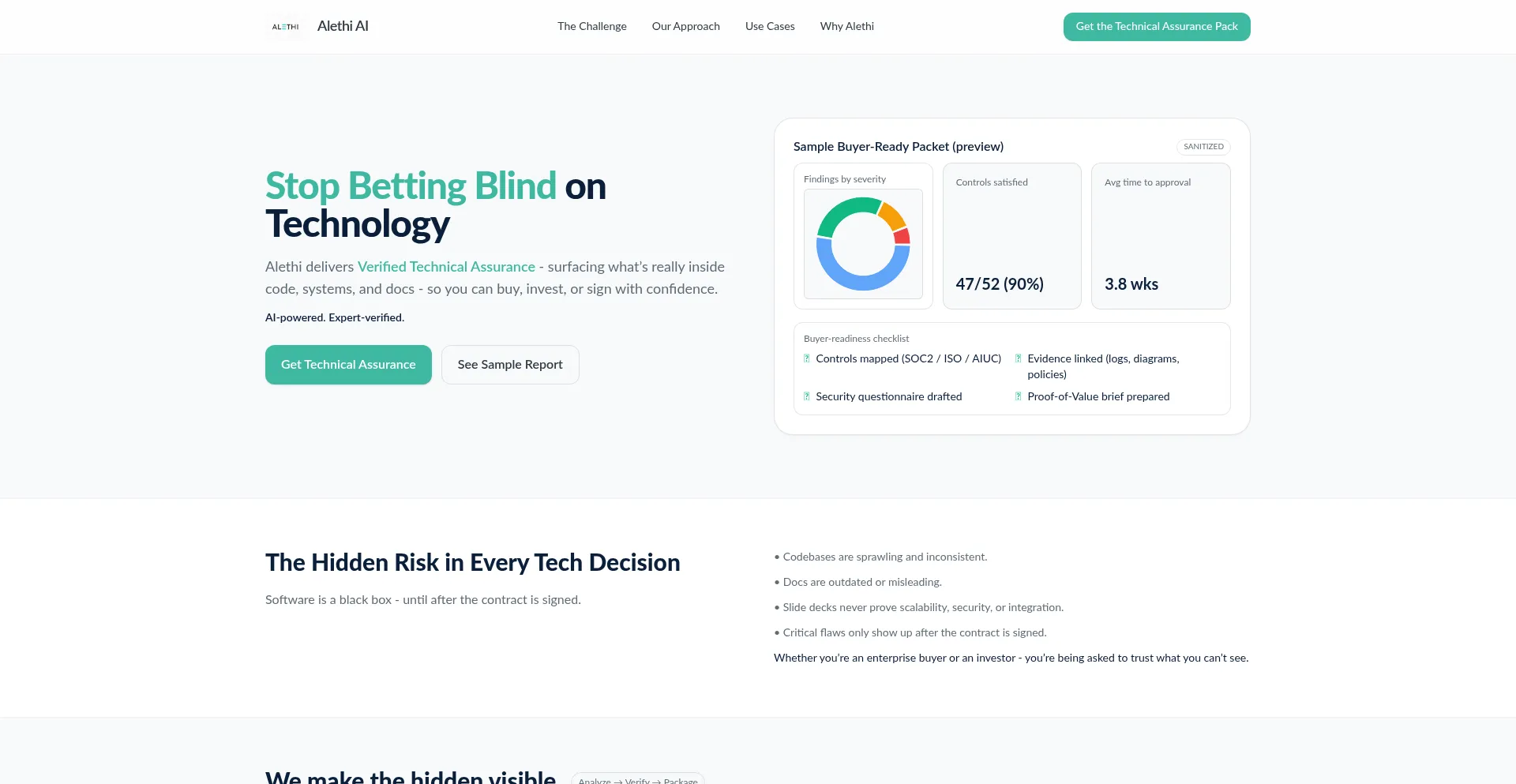 AI-powered, expert-verified technical assurance for M&A and enterprise deals. Evidence-linked findings and decision-ready packages.
