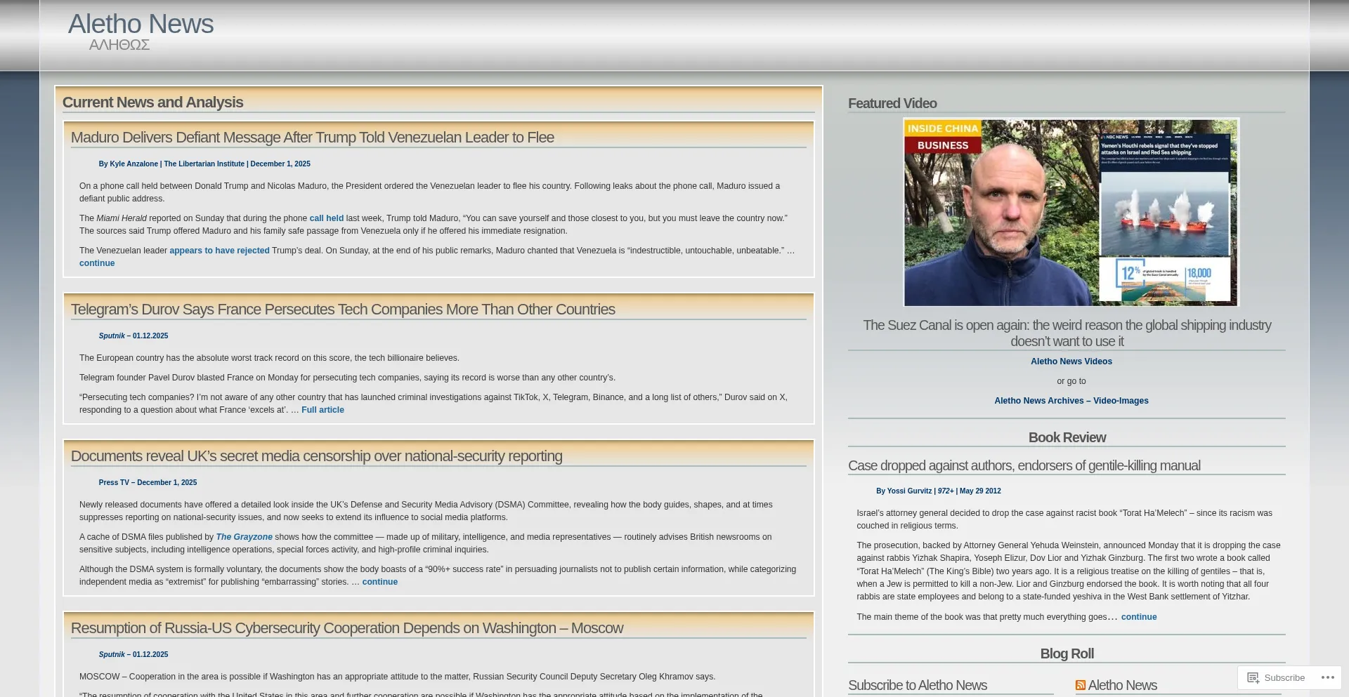Alethonews.com blocked? Check the safety report created on December 1, 2025