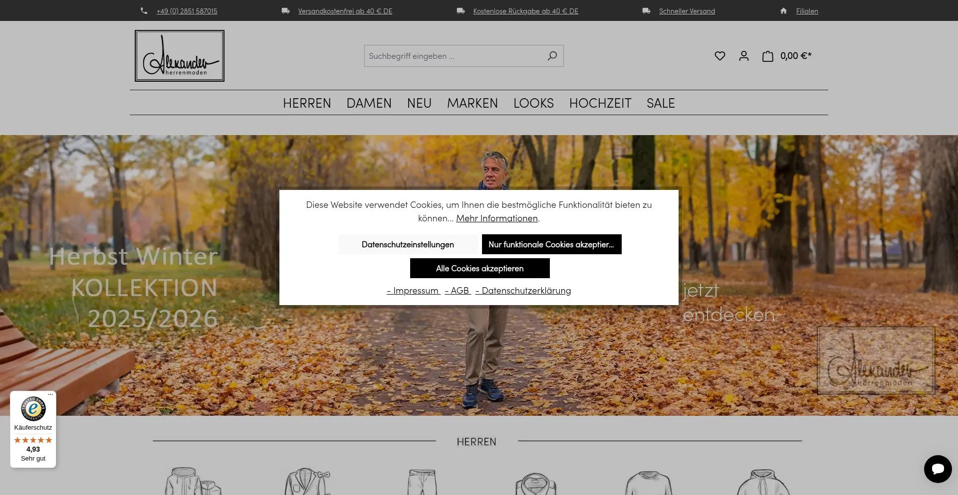 The website implements cookie consent mechanisms in compliance with privacy regulations such as GDPR or CCPA. This demonstrates that alexander-herrenmoden.de adheres to data protection standards and provides users with control over personal data collection practices.