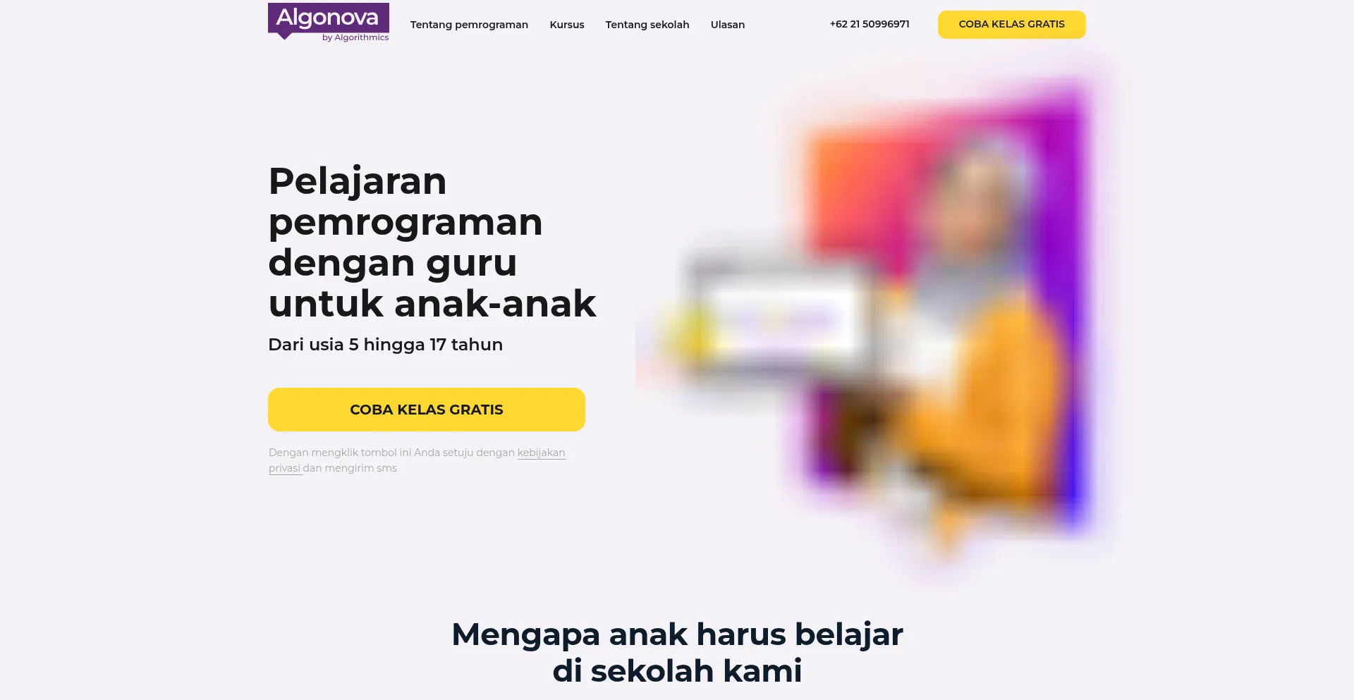 Algonova — Pelajaran pemrograman dengan guru untuk anak-anak, dari usia 5 hingga 17 tahun