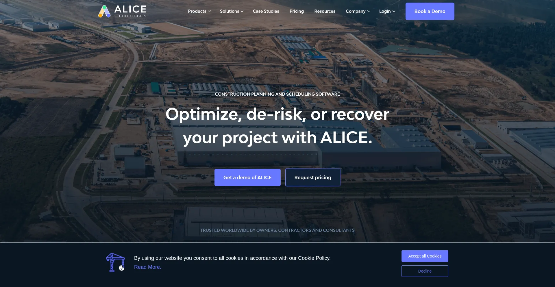 ALICE is a construction project schedule optimization software that enables contractors and owners to optimize, de-risk and recover construction projects with AI.