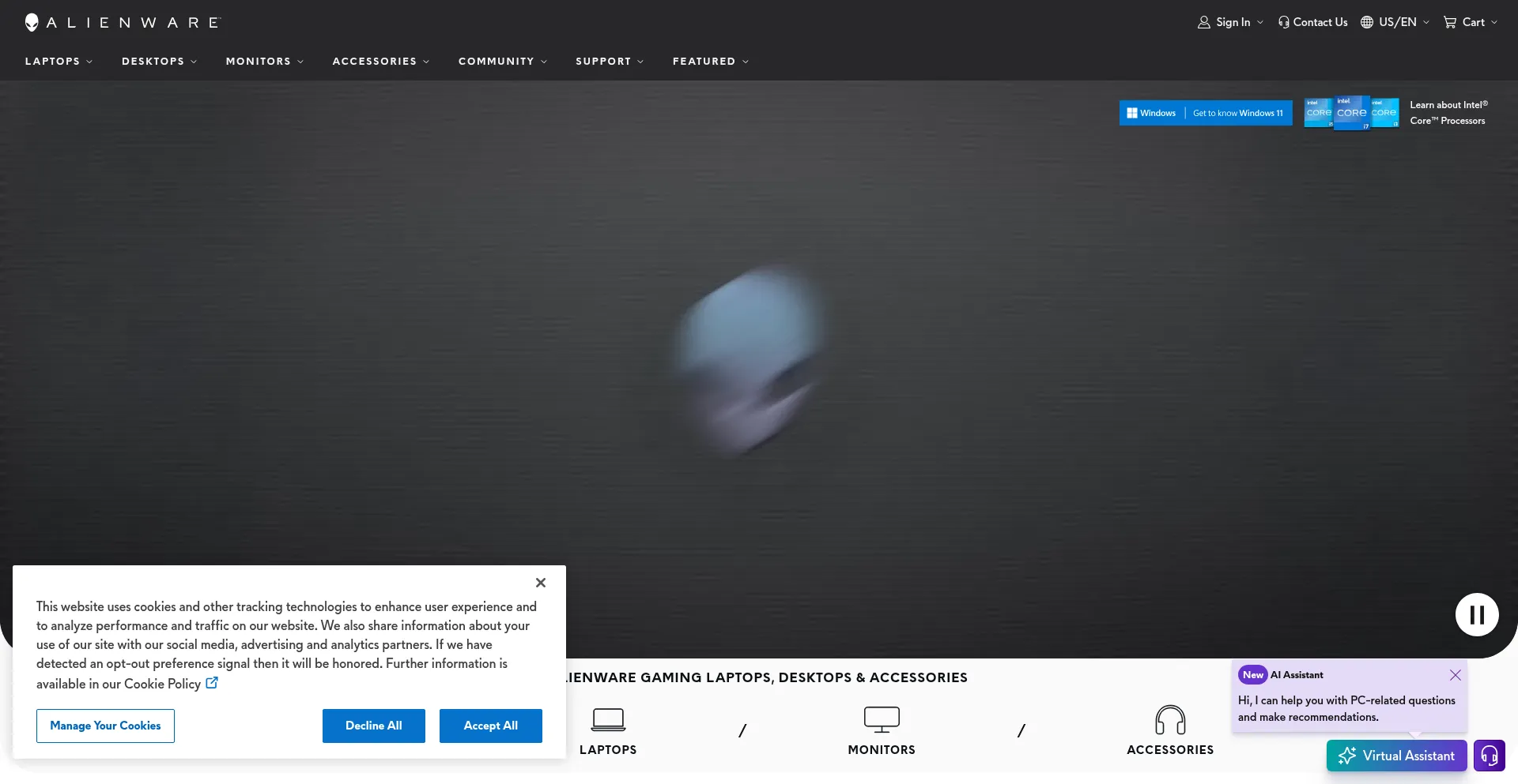 The website implements cookie consent mechanisms in compliance with privacy regulations such as GDPR or CCPA. This demonstrates that alienware.com adheres to data protection standards and provides users with control over personal data collection practices.