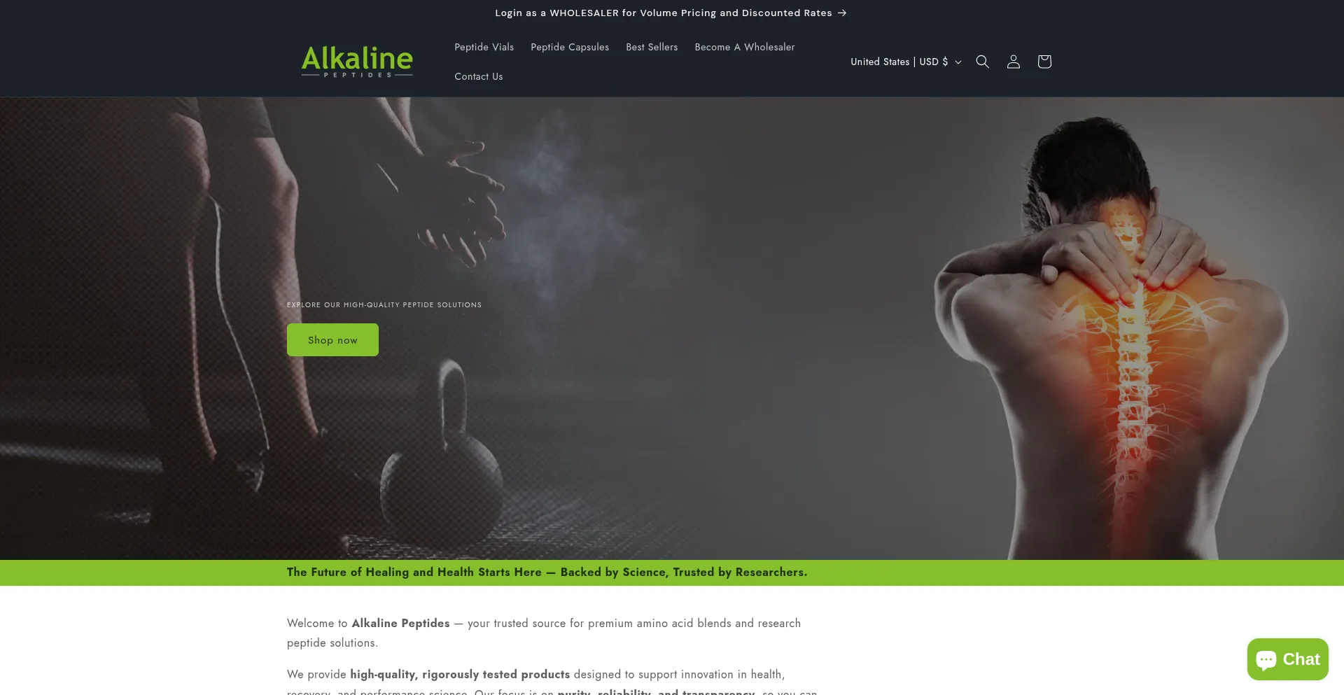 Analysis indicates that alkalinepeptides.com operates as an e-commerce platform facilitating online transactions for goods or services. The website implements shopping cart functionality, payment processing systems, and product catalog features typical of commercial retail operations.