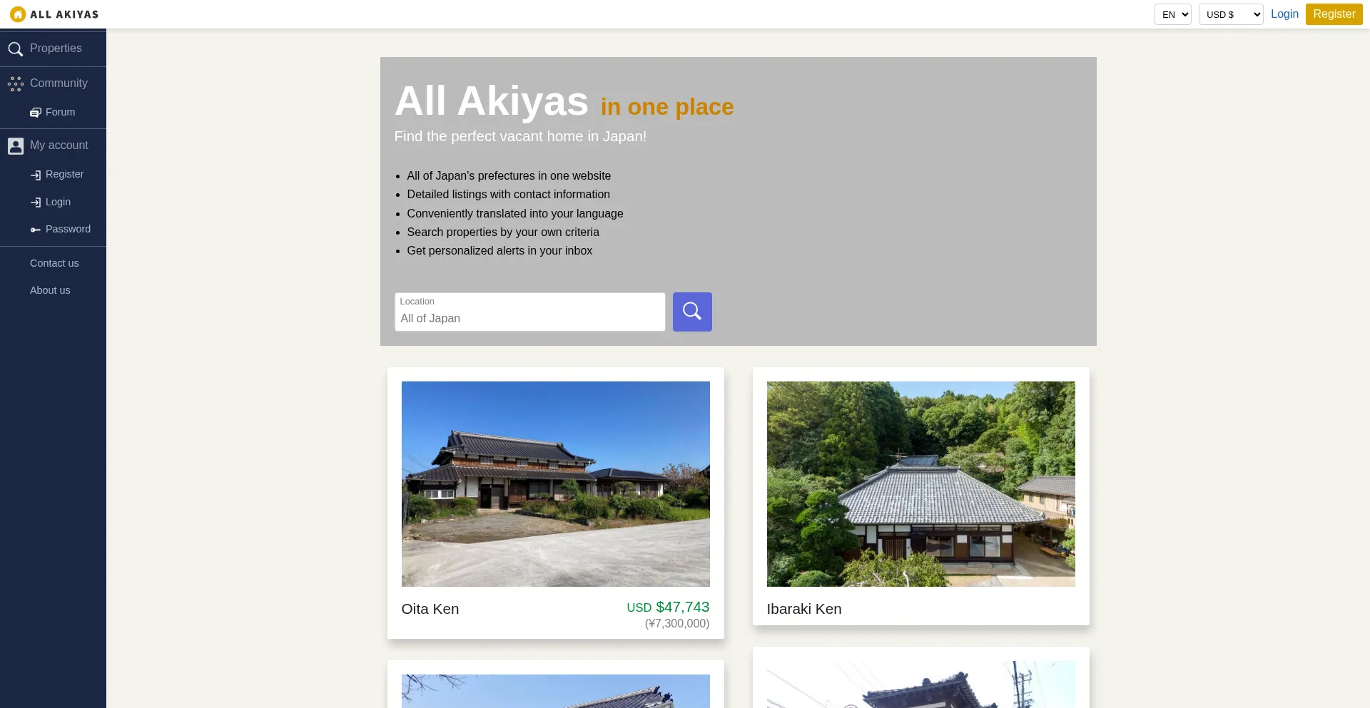 A catalog of all cheap and vacant houses, also known as Akiyas, made available in Japan by municipal governments and local real estate agencies.
