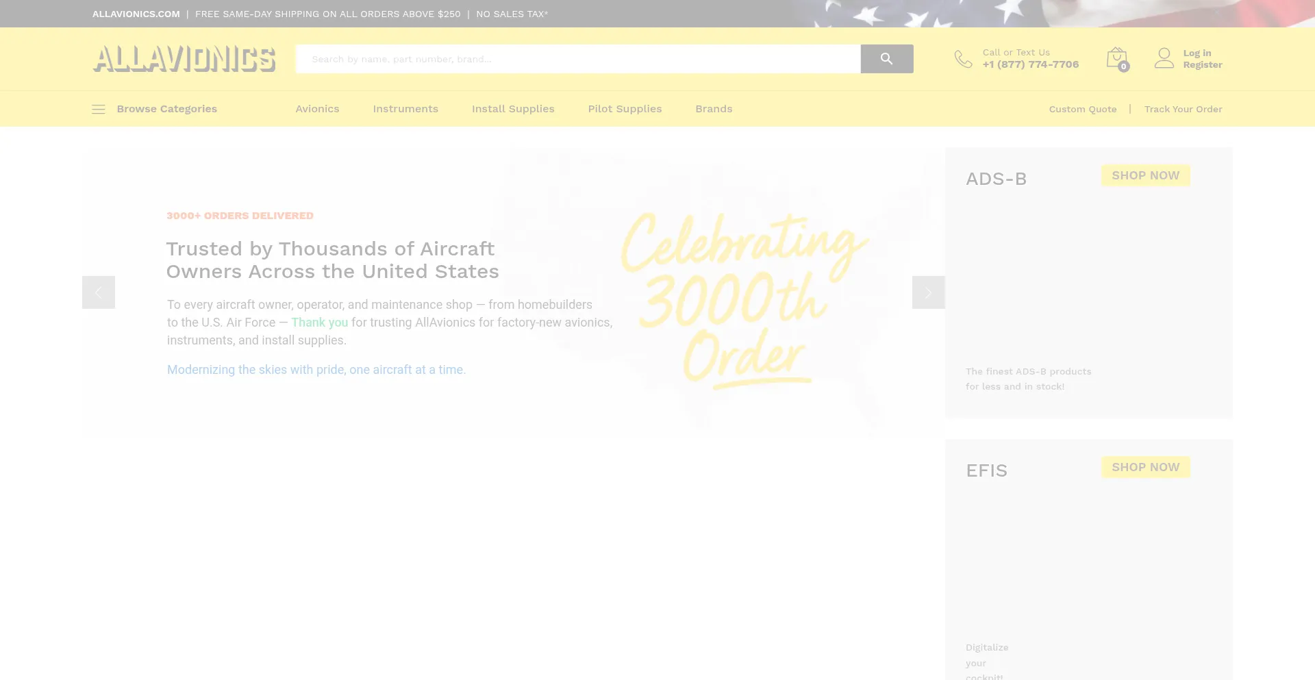 Analysis indicates that allavionics.com operates as an e-commerce platform facilitating online transactions for goods or services. The website implements shopping cart functionality, payment processing systems, and product catalog features typical of commercial retail operations.