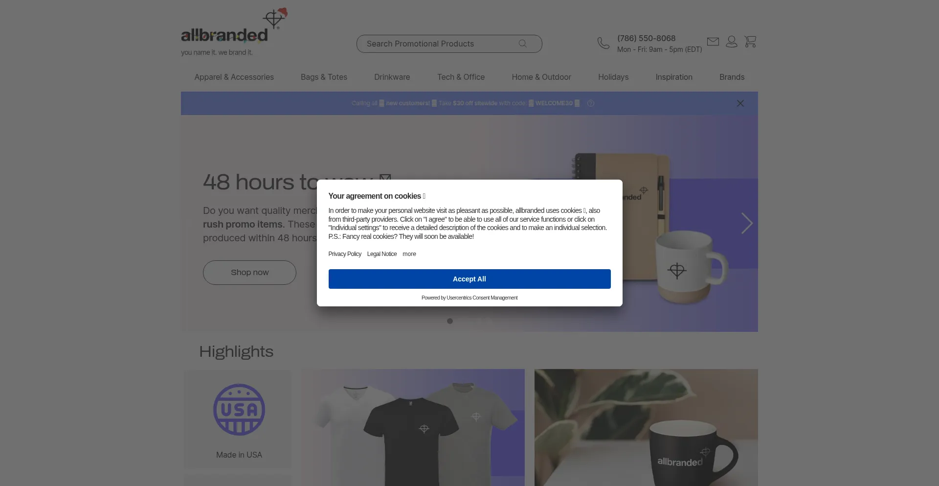 The website implements cookie consent mechanisms in compliance with privacy regulations such as GDPR or CCPA. This demonstrates that allbranded.com adheres to data protection standards and provides users with control over personal data collection practices.