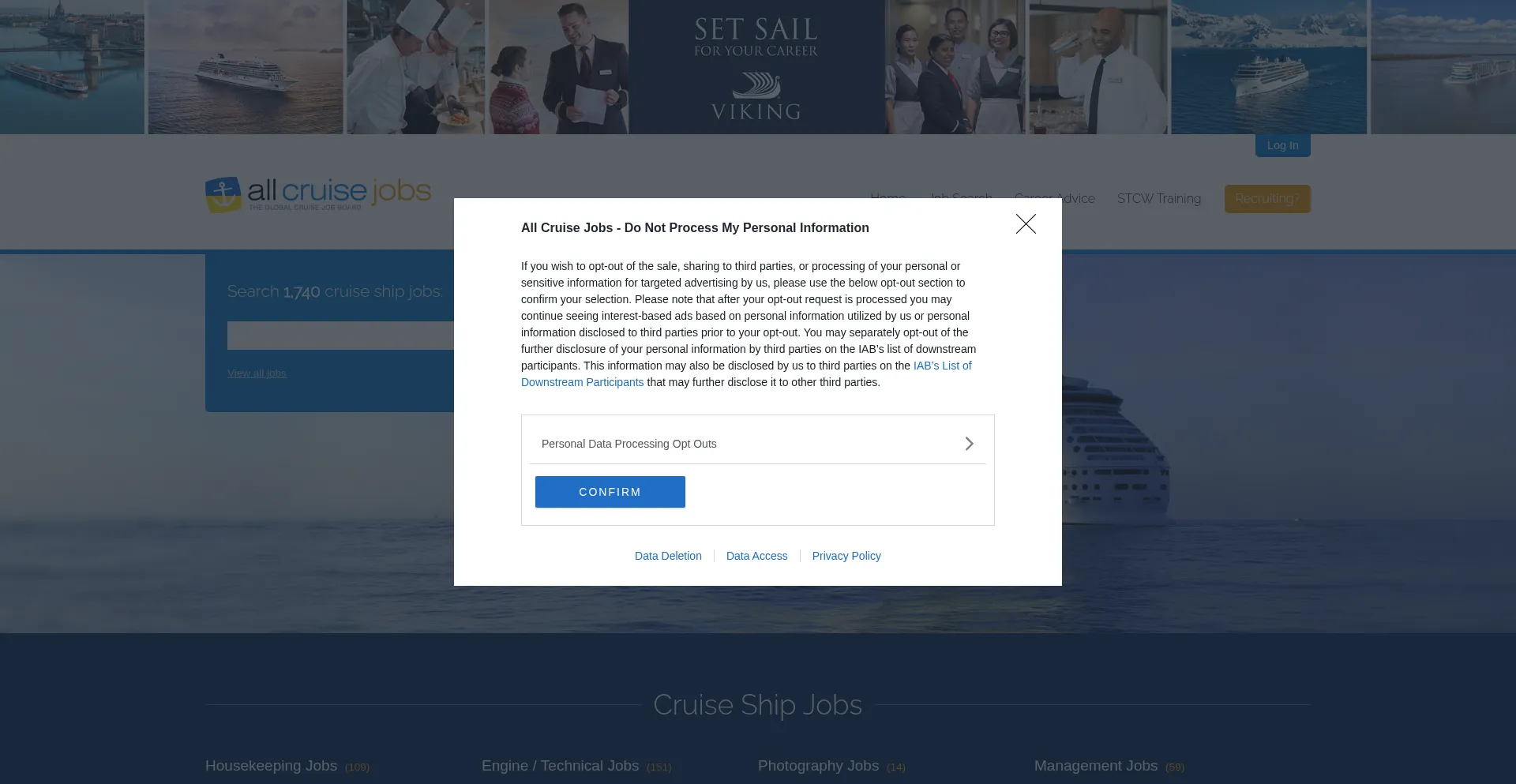 The allcruisejobs.com website implements data collection forms requesting personal information including names, email addresses, phone numbers, or other sensitive details. Users should verify the legitimacy of it and review privacy policies before submitting personal data.