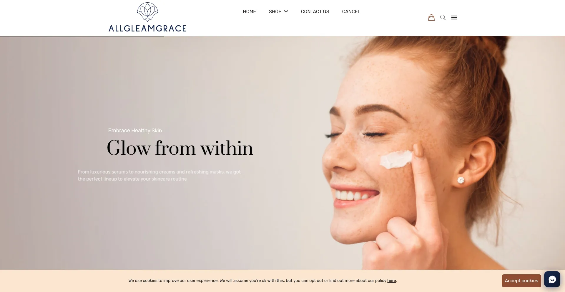 The website implements cookie consent mechanisms in compliance with privacy regulations such as GDPR or CCPA. This demonstrates that allgleamgrace.com adheres to data protection standards and provides users with control over personal data collection practices.