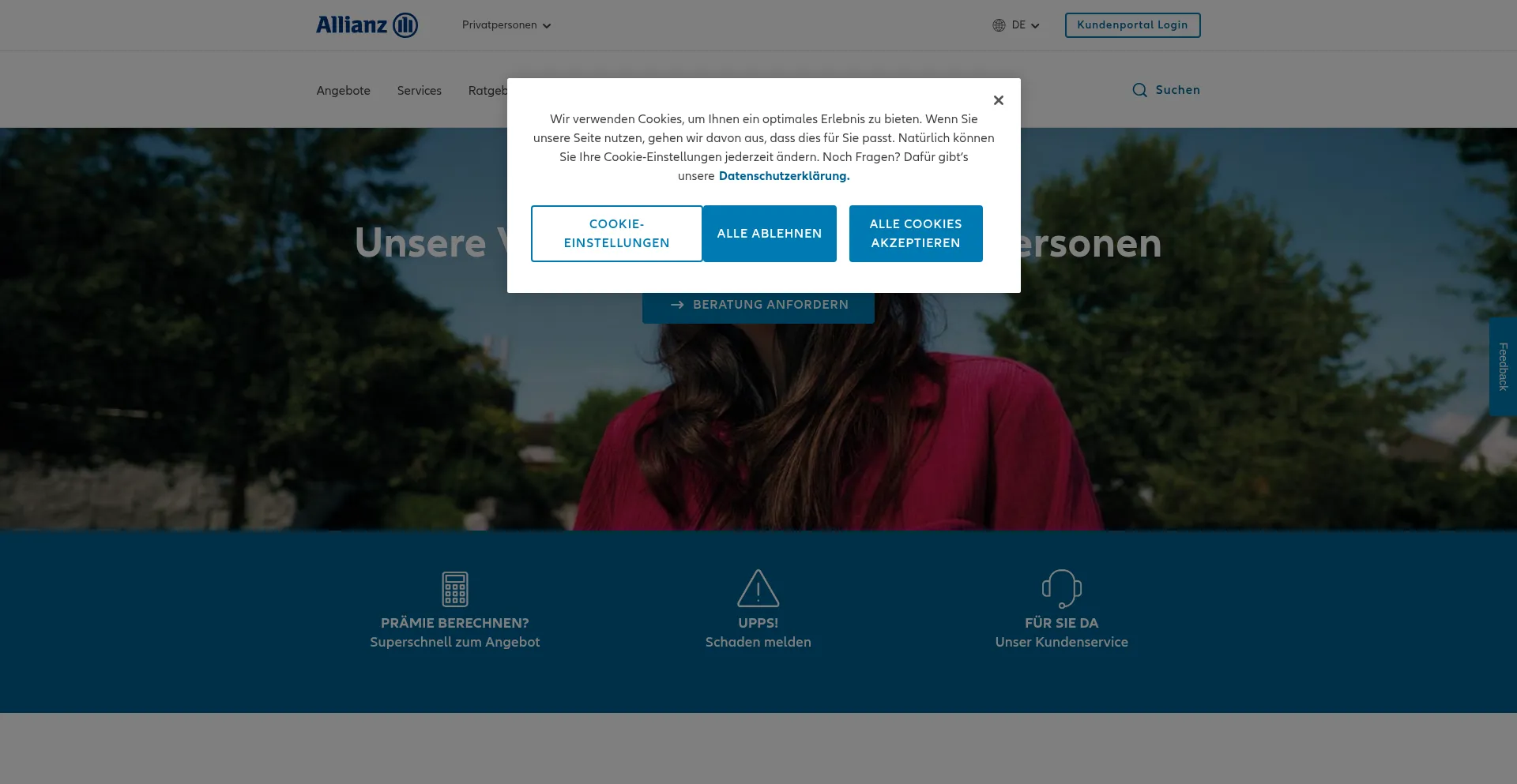 The website implements cookie consent mechanisms in compliance with privacy regulations such as GDPR or CCPA. This demonstrates that allianz.ch adheres to data protection standards and provides users with control over personal data collection practices.