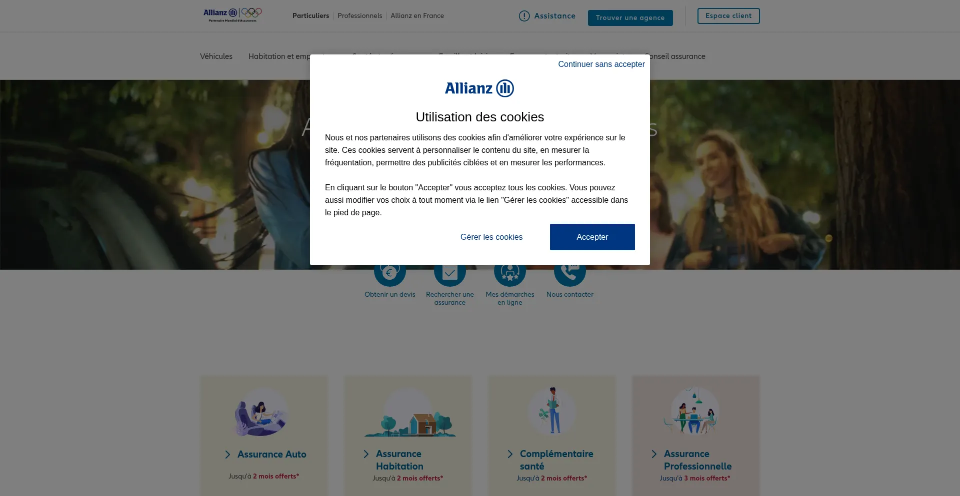The website implements cookie consent mechanisms in compliance with privacy regulations such as GDPR or CCPA. This demonstrates that allianz.fr adheres to data protection standards and provides users with control over personal data collection practices.
