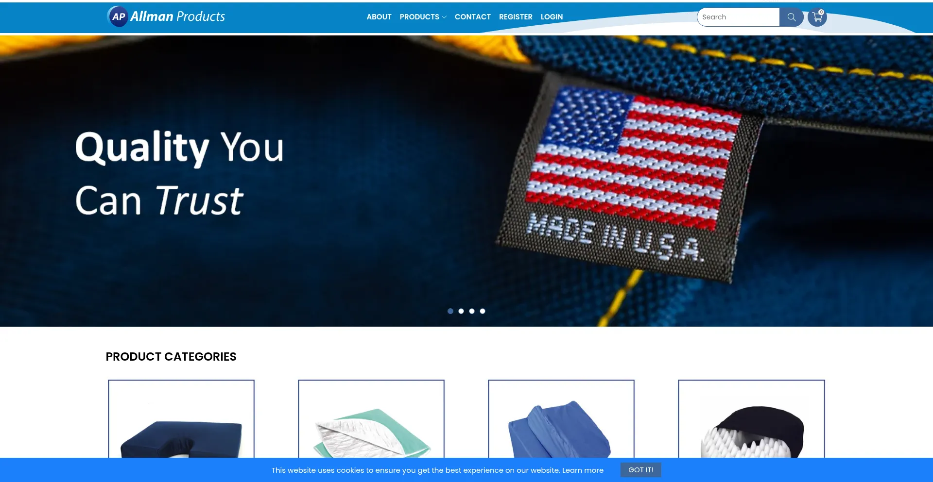 Analysis indicates that allmanproducts.com operates as an e-commerce platform facilitating online transactions for goods or services. The website implements shopping cart functionality, payment processing systems, and product catalog features typical of commercial retail operations.