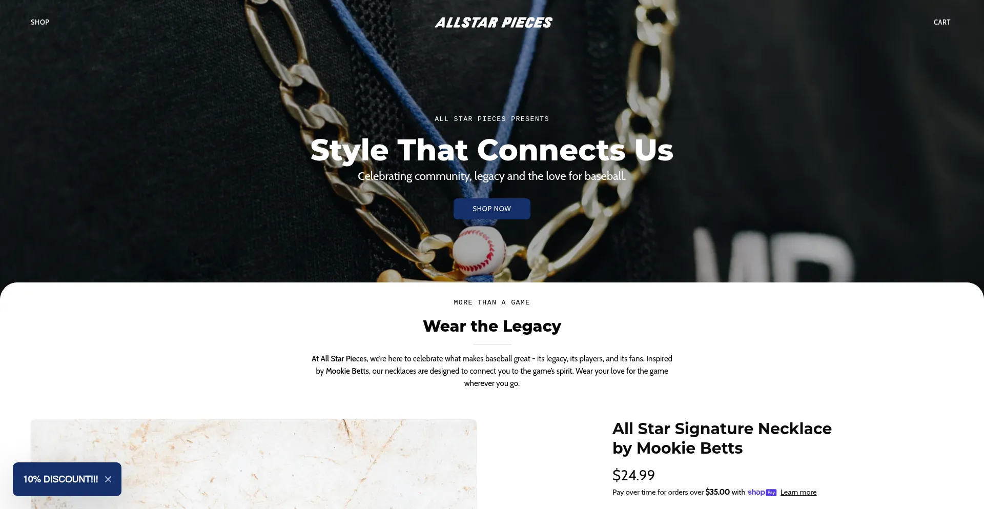 Discover All Star Pieces, a brand bringing new energy to baseball with stylish, wearable memorabilia inspired by World Series champion Mookie Betts. Our signature necklaces conn...