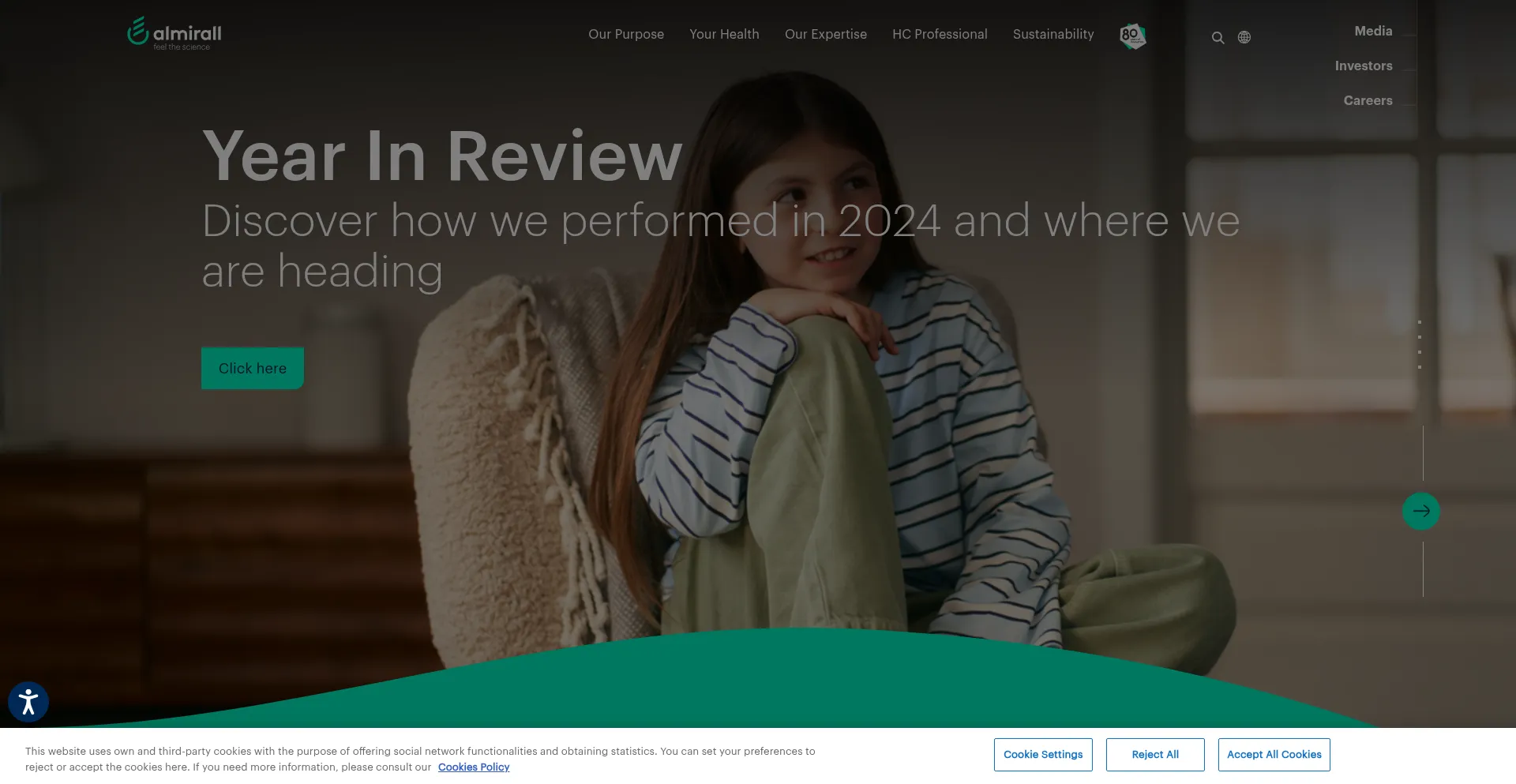 The website implements cookie consent mechanisms in compliance with privacy regulations such as GDPR or CCPA. This demonstrates that almirall.com adheres to data protection standards and provides users with control over personal data collection practices.