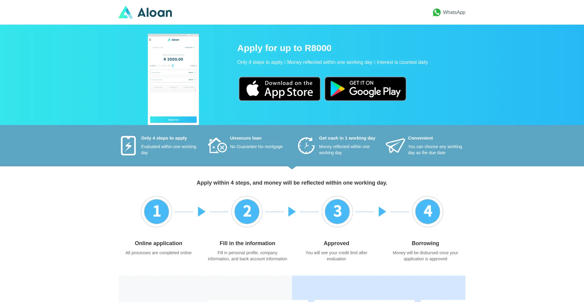 appmarket apps.apple.com wa.me www.googletagmanager.com play.google.com aloan.co.za www.google-analytics.com app.aloan-sa.com