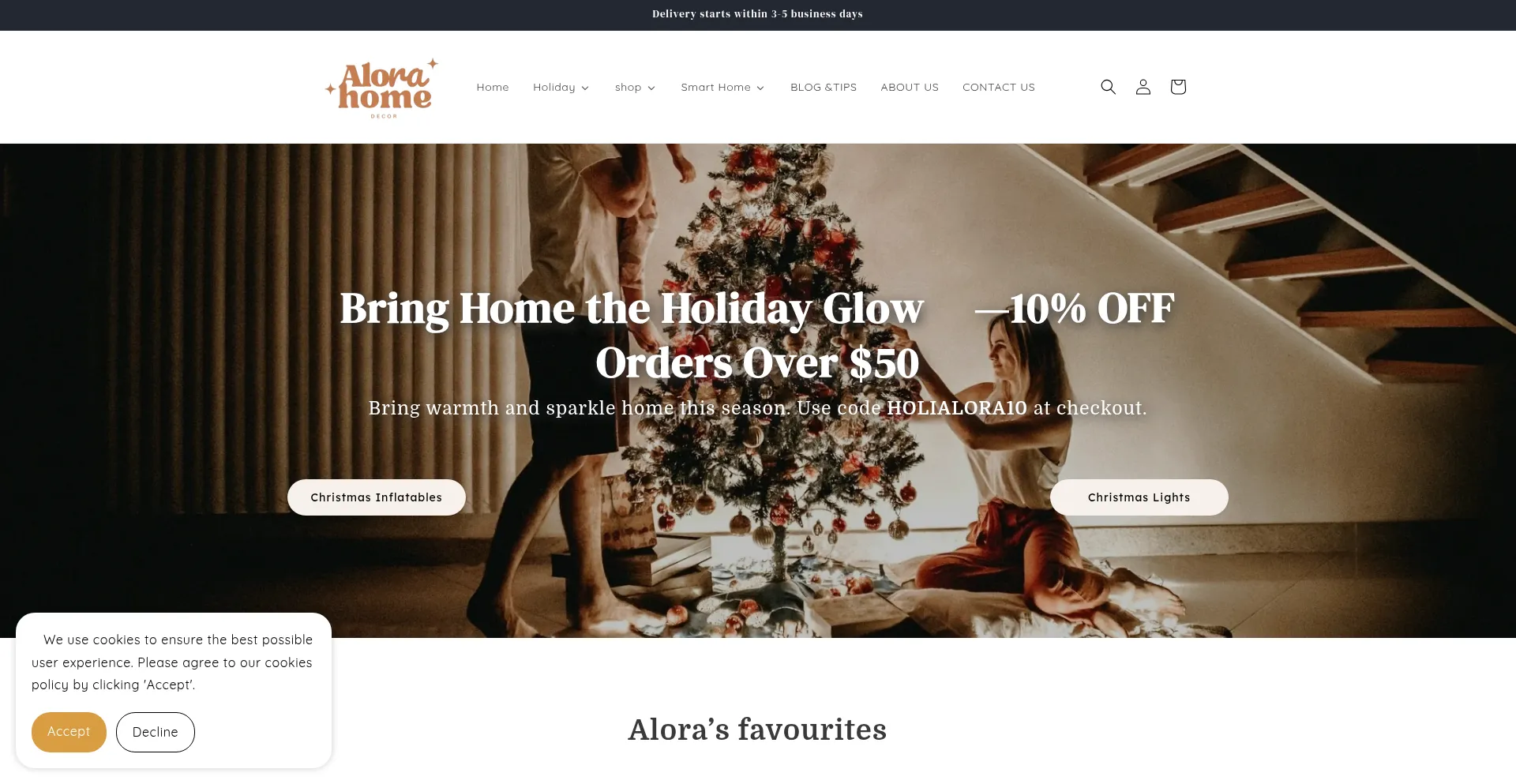 The website implements cookie consent mechanisms in compliance with privacy regulations such as GDPR or CCPA. This demonstrates that alorahomedecor.com adheres to data protection standards and provides users with control over personal data collection practices.