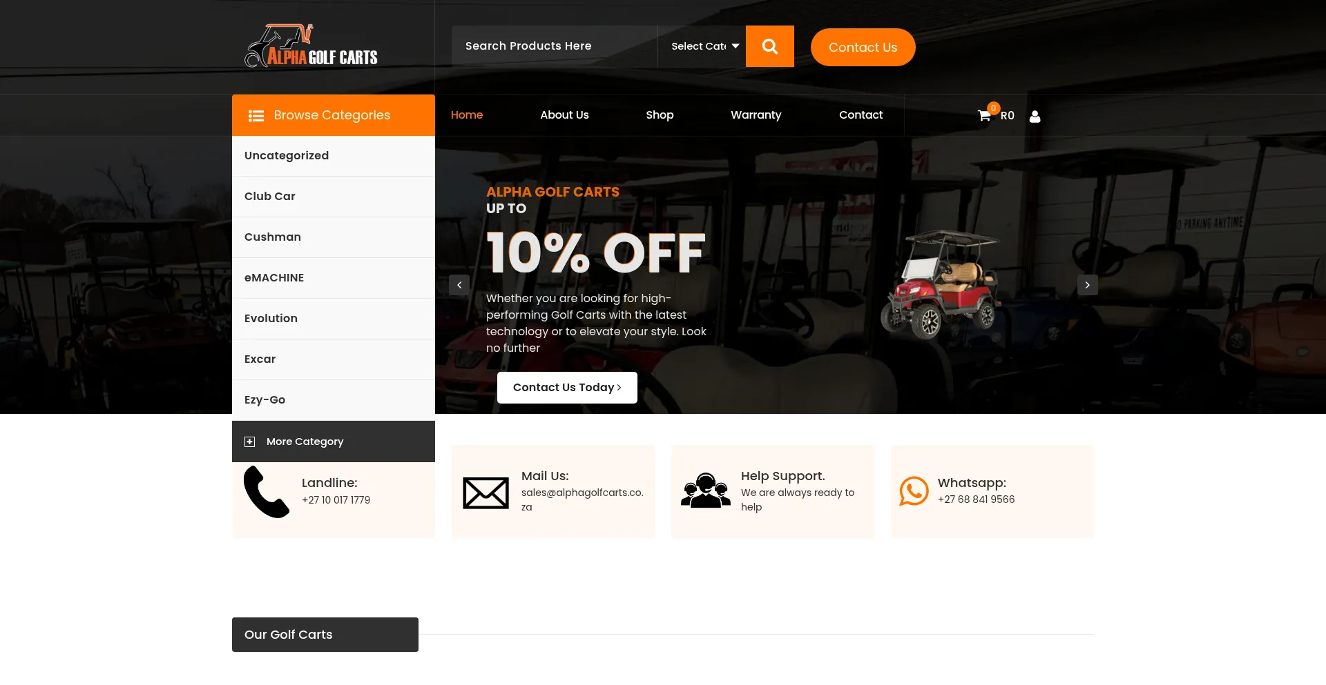 Analysis indicates that alphagolfcarts.co.za operates as an e-commerce platform facilitating online transactions for goods or services. The website implements shopping cart functionality, payment processing systems, and product catalog features typical of commercial retail operations.
