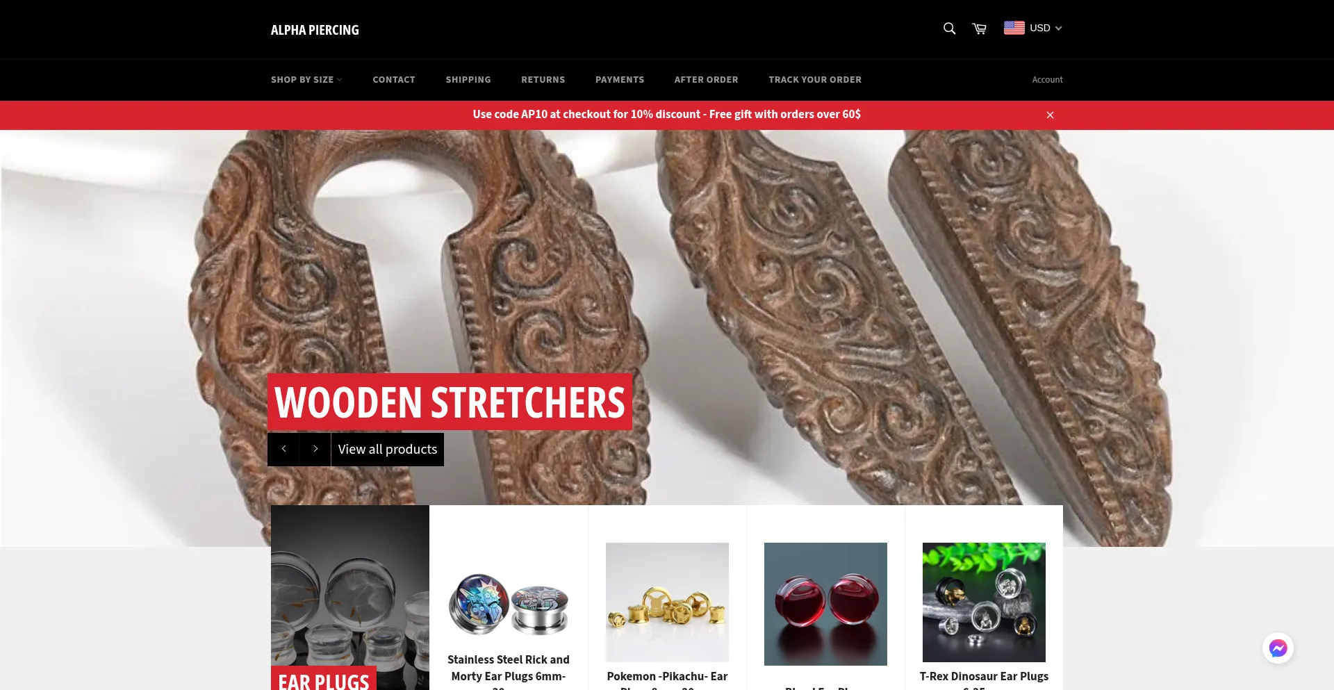 Analysis indicates that alphapiercing.com operates as an e-commerce platform facilitating online transactions for goods or services. The website implements shopping cart functionality, payment processing systems, and product catalog features typical of commercial retail operations.