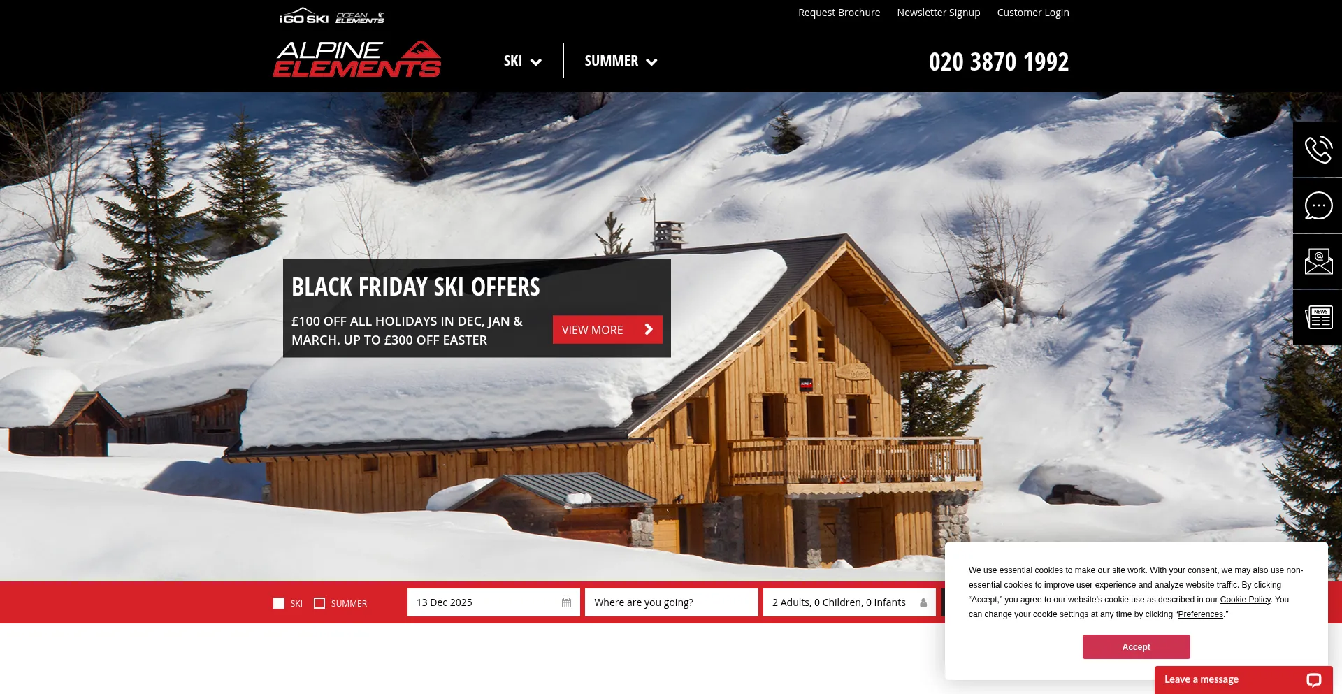 The website implements cookie consent mechanisms in compliance with privacy regulations such as GDPR or CCPA. This demonstrates that alpineelements.co.uk adheres to data protection standards and provides users with control over personal data collection practices.
