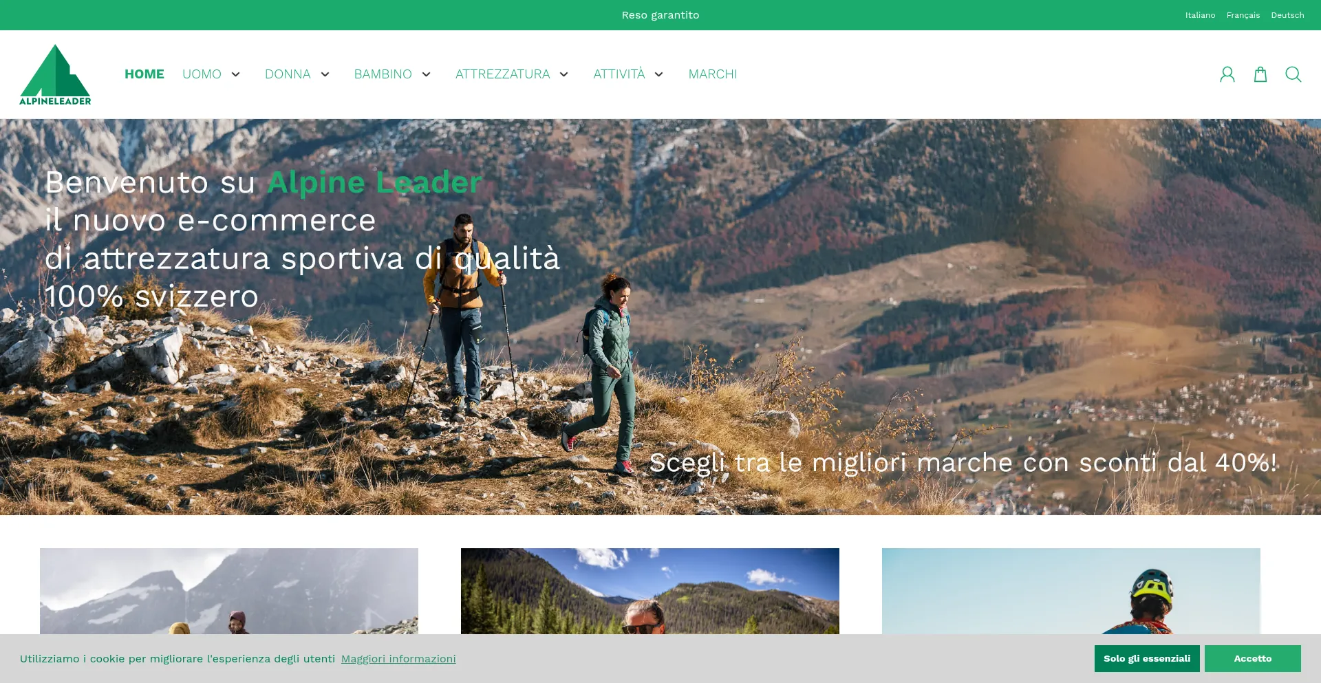 Analysis indicates that alpineleader.ch operates as an e-commerce platform facilitating online transactions for goods or services. The website implements shopping cart functionality, payment processing systems, and product catalog features typical of commercial retail operations.