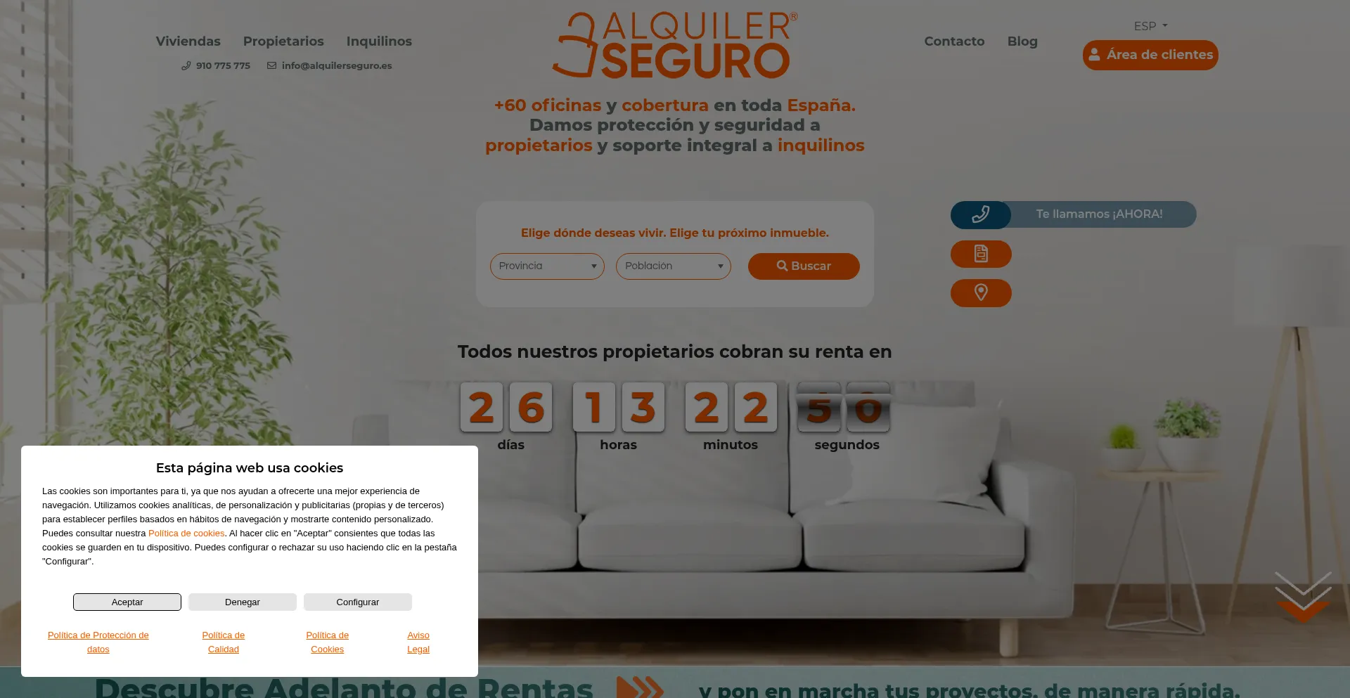 The website implements cookie consent mechanisms in compliance with privacy regulations such as GDPR or CCPA. This demonstrates that alquilerseguro.es adheres to data protection standards and provides users with control over personal data collection practices.