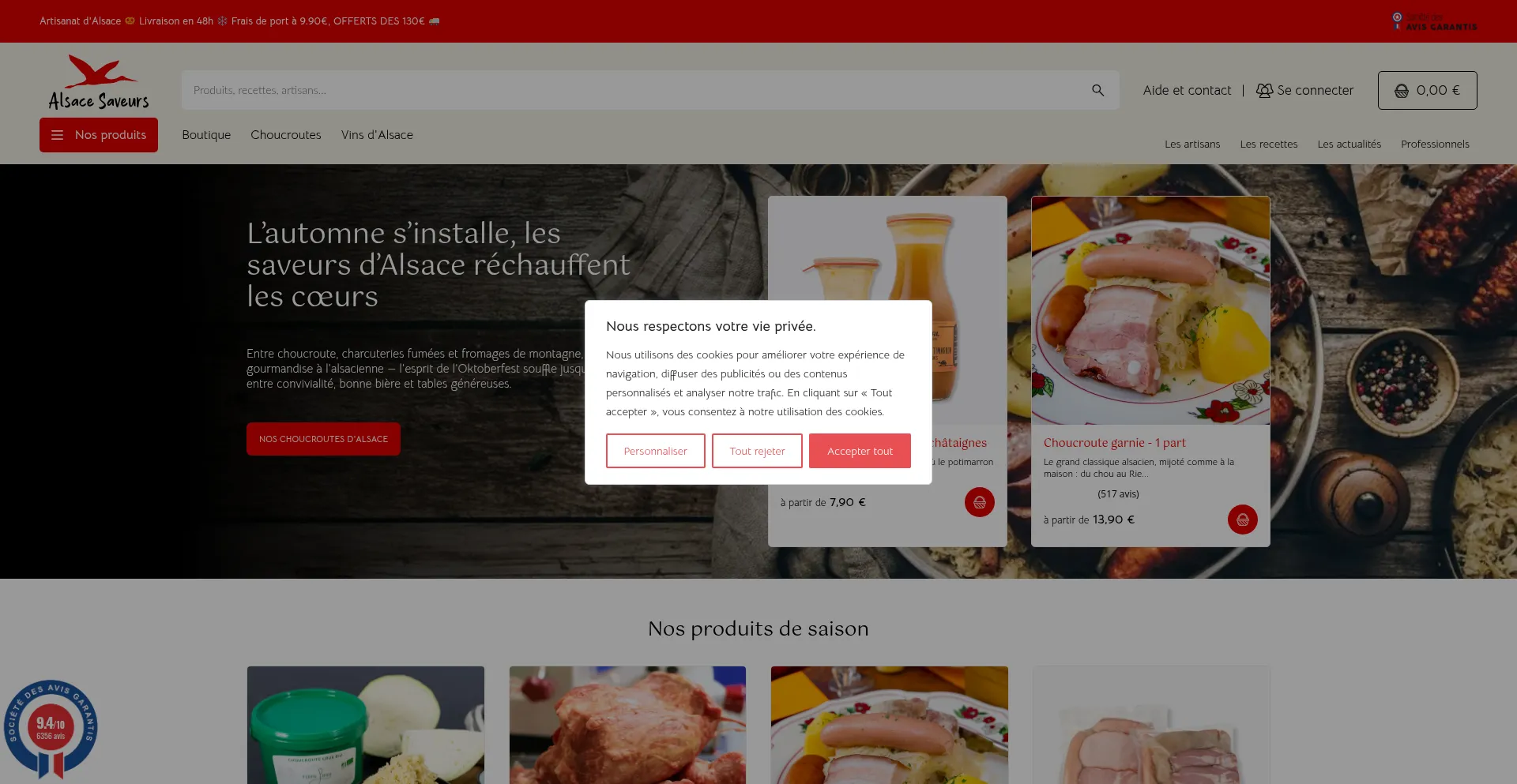 The website implements cookie consent mechanisms in compliance with privacy regulations such as GDPR or CCPA. This demonstrates that alsacesaveurs.com adheres to data protection standards and provides users with control over personal data collection practices.