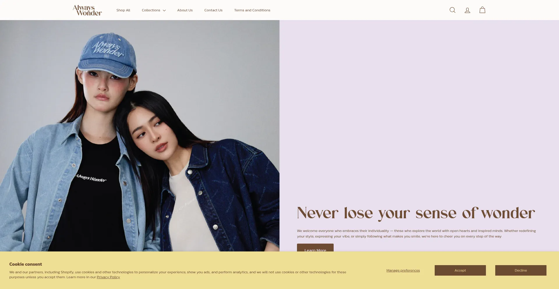 Analysis indicates that alwayswonder-co.com operates as an e-commerce platform facilitating online transactions for goods or services. The website implements shopping cart functionality, payment processing systems, and product catalog features typical of commercial retail operations.