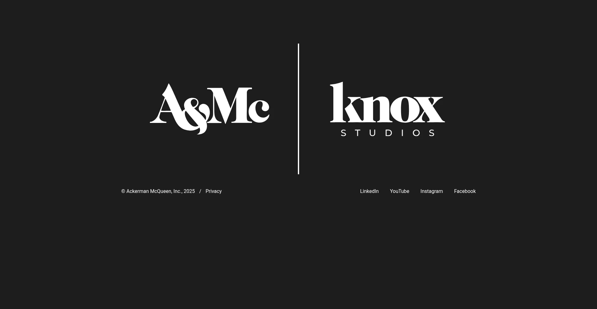 Landing page to discover the complete array of competencies and abilities of Ackerman McQueen, Knox Studios, Bonfire Media & Sundry Souls.