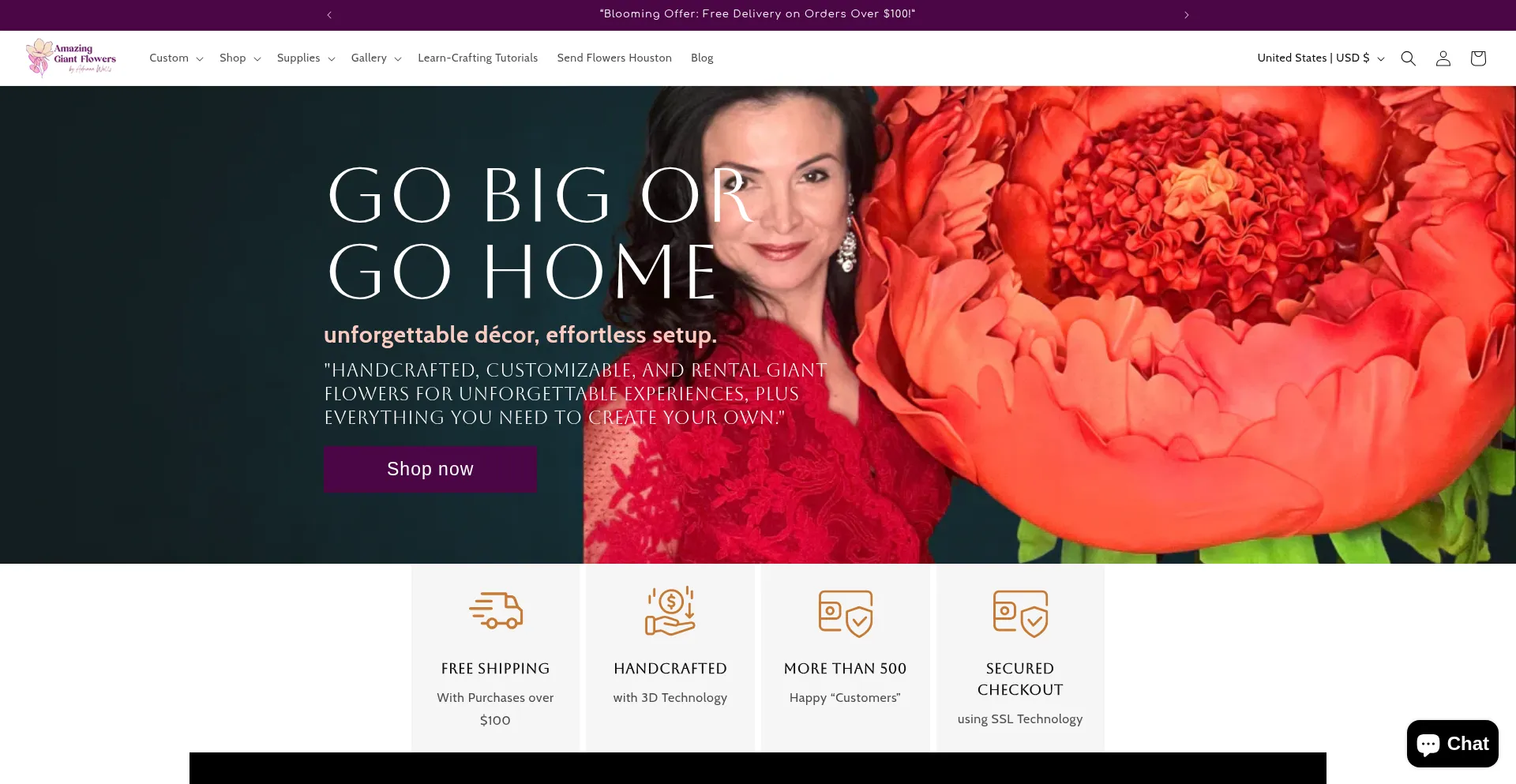Our analyzer determines that website amazinggiantflowers.com is using Shopify CMS. Shopify is a popular e-commerce platform, powering around 4.4% of websites globally.