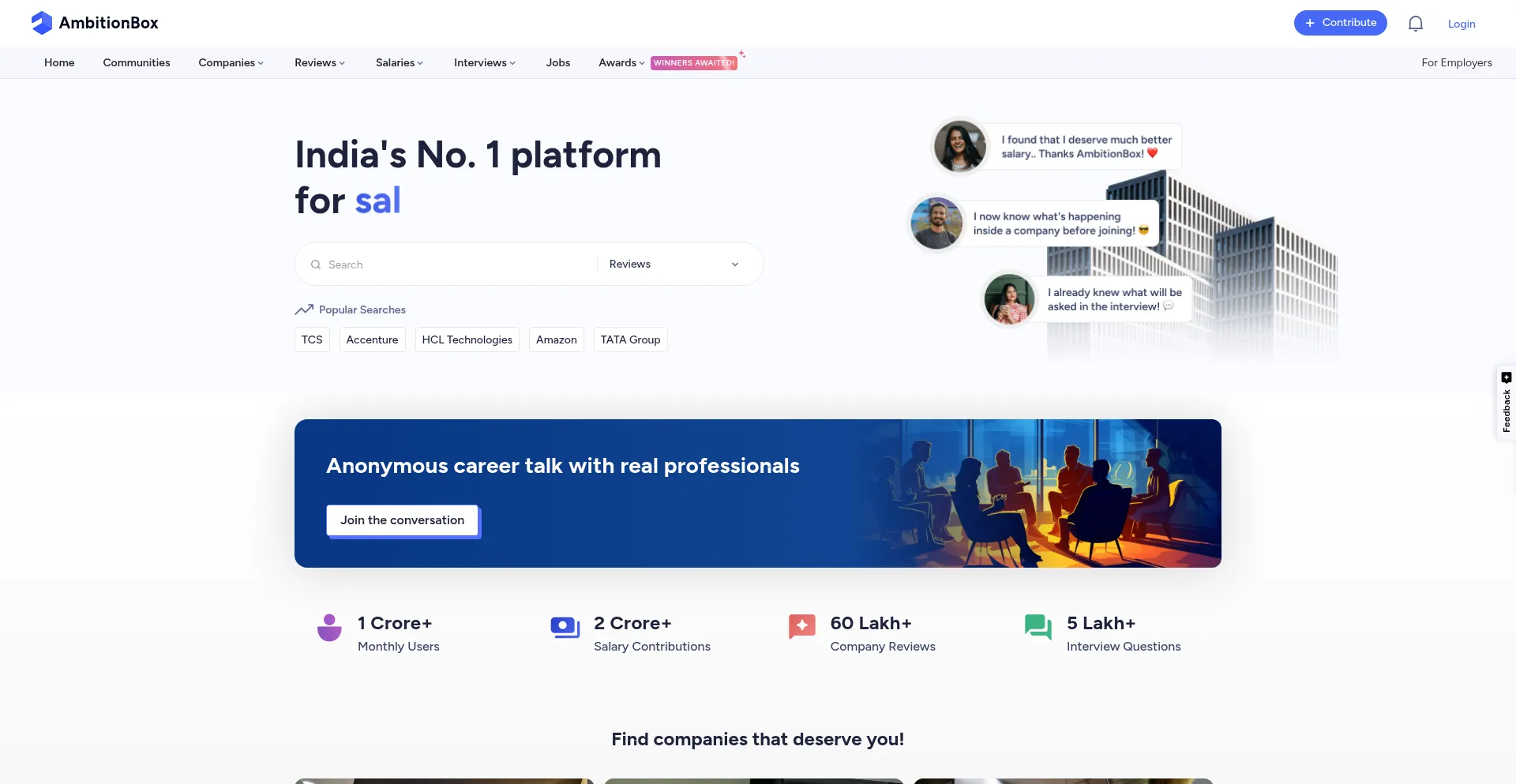 Company Reviews, Salaries by Company, Interview Questions, Salary Calculator | AmbitionBox