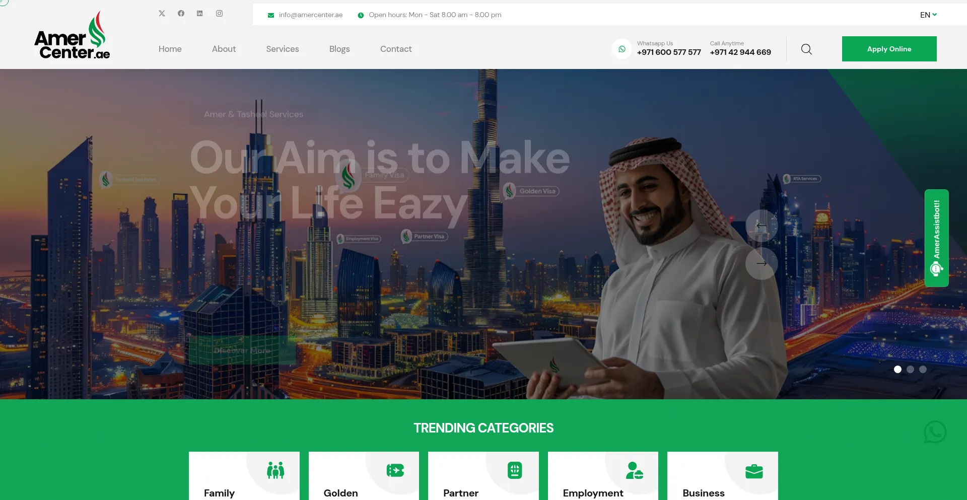 Amer Center Offers Visa Services, Tasheel Services, Dubai Police Services, Business Setup & Trade License Services, Economic Services, and more government related services Onlin...