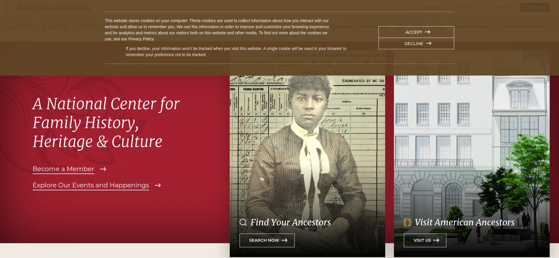 The americanancestors.org website implements data collection forms that may request personal information including names, email addresses, phone numbers, or other sensitive details. Users should verify the legitimacy of it and review privacy policies before submitting personal data.