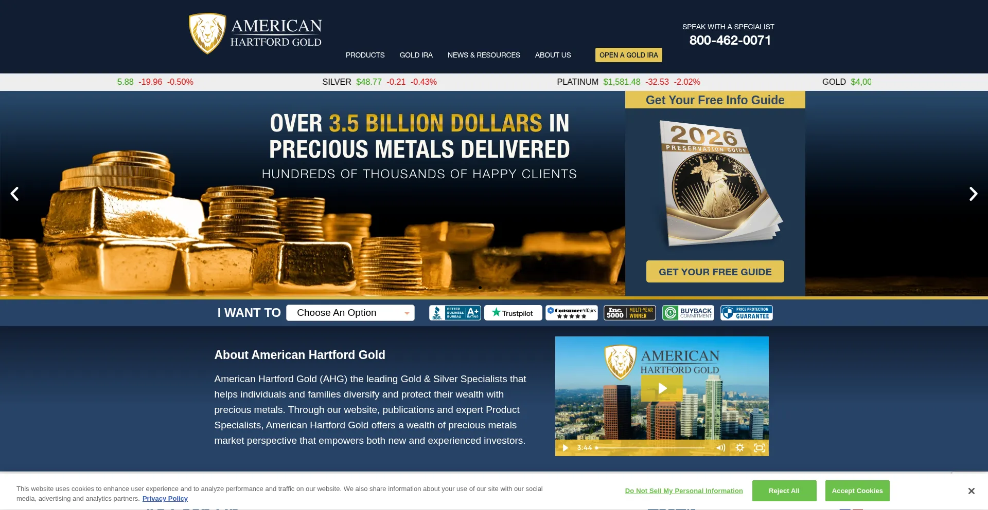 American Hartford Gold is America's leading precious metals dealer with an A+ rating from the BBB and thousands of satisfied clients.